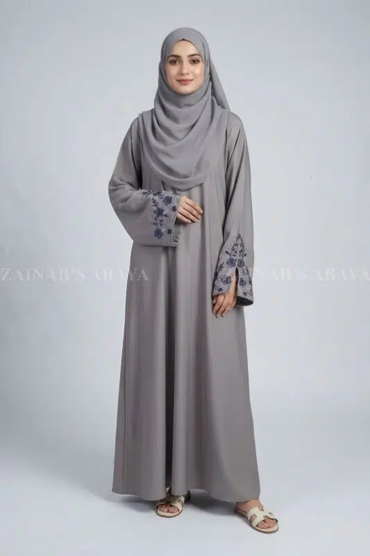 Nida Light Grey Embroidered Maxi Abaya OL-1150