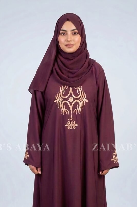 Maroon Color Maxi Abaya with Embroidery on Front and Sleeves Cuffs OL-1140