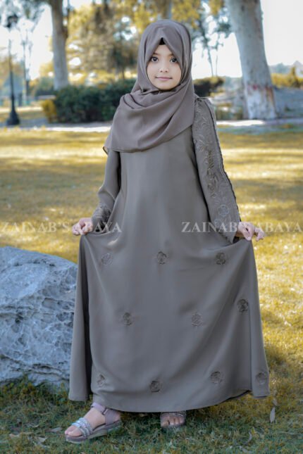 Front Open Abaya for Kids with Pear Work on Sleeves J-110