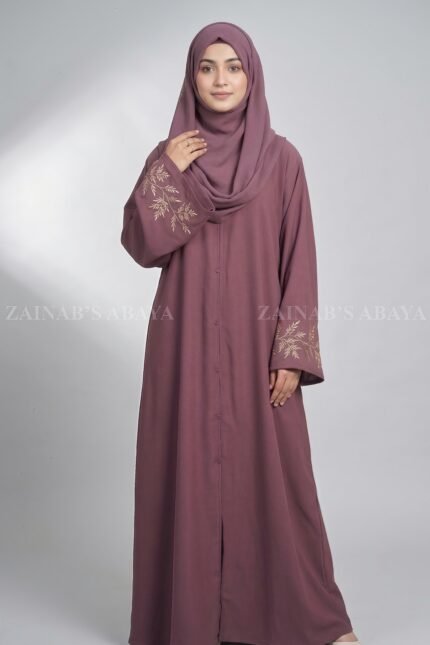 Nida Front Open Gown Abaya with Embroidery Work On Front & Sleeves – 0815