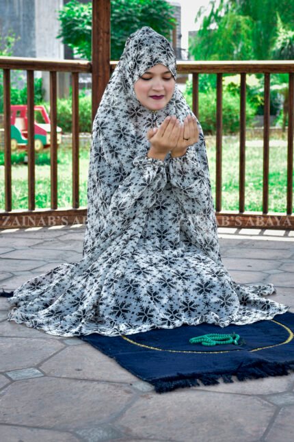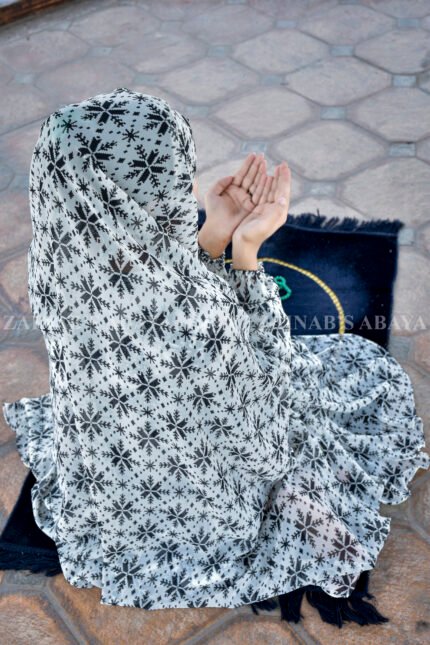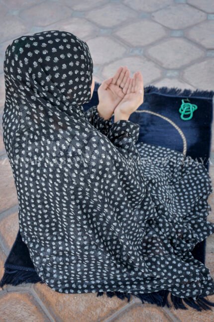 Prayer Chadar in Black Chiffon with White Floral Print Acc-45