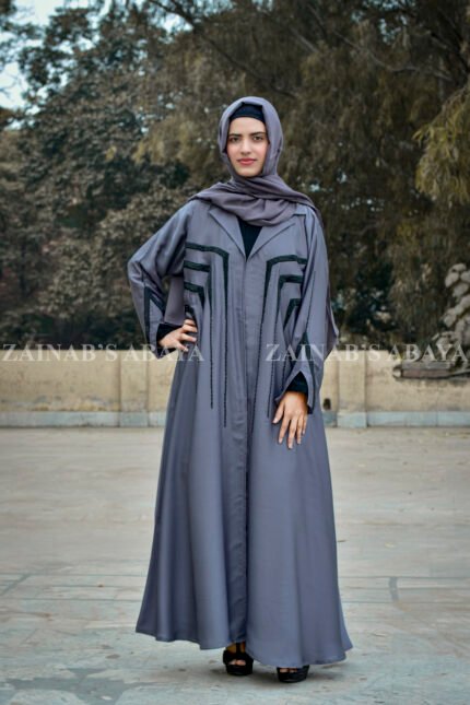 Front Open Abaya with Embroidery & Pipping on Sleeves and Chak OL- 1012