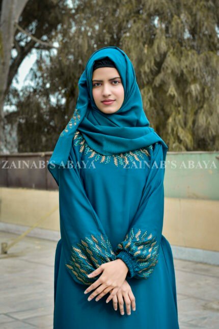 New Nida Two Color Embroidery Maxi Abaya – 0836