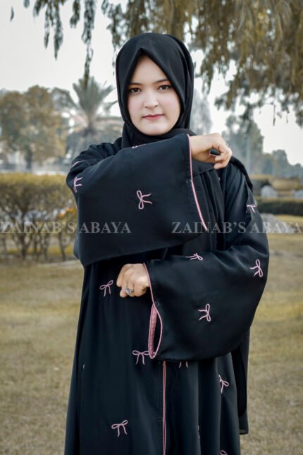 Front Open Abaya with Bow Style Embroidery OL-1052