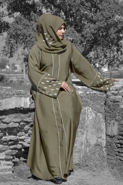 Front Open Abaya with Cut & Pearl Work on Sleeves OL-1045