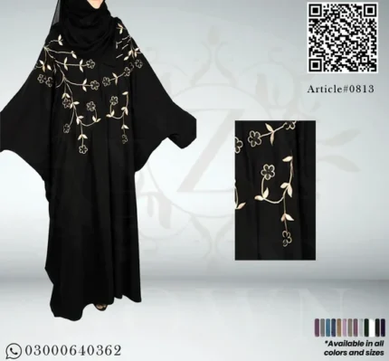New Nida Butterfly Abaya with Embroidery On Front – 0813