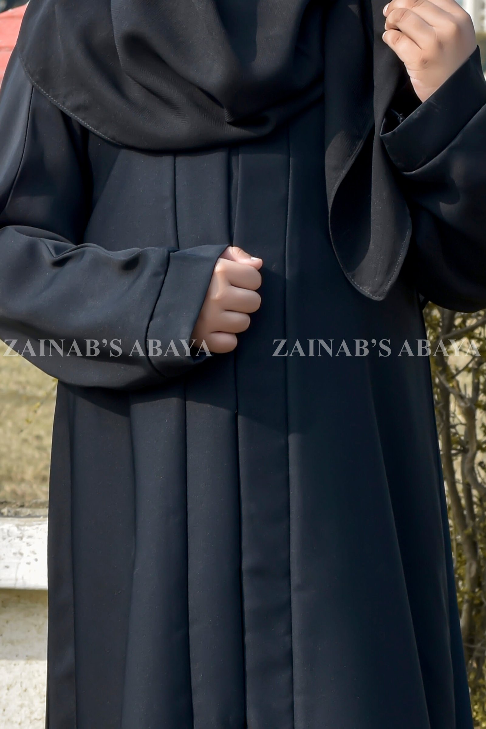 This black abaya for kids is designed with simplicity and elegance in mind. The classic front-open style offers ease of wear, while the plain black color makes it versatile for any occasion. Perfect for little ones who love to stay stylish and comfortable.