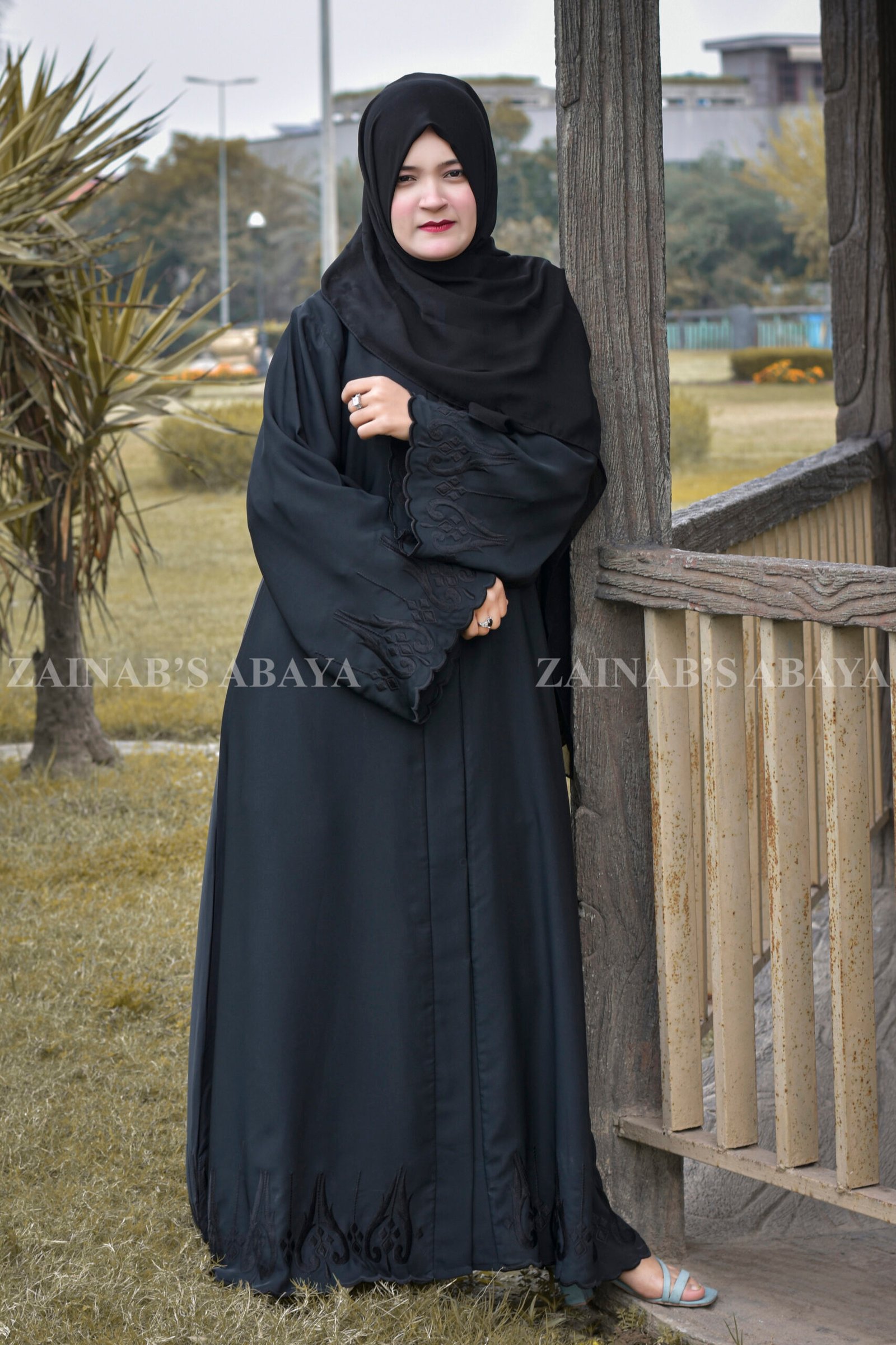 New Nida Black Front Open Gown Abaya with Embroidery – 0809