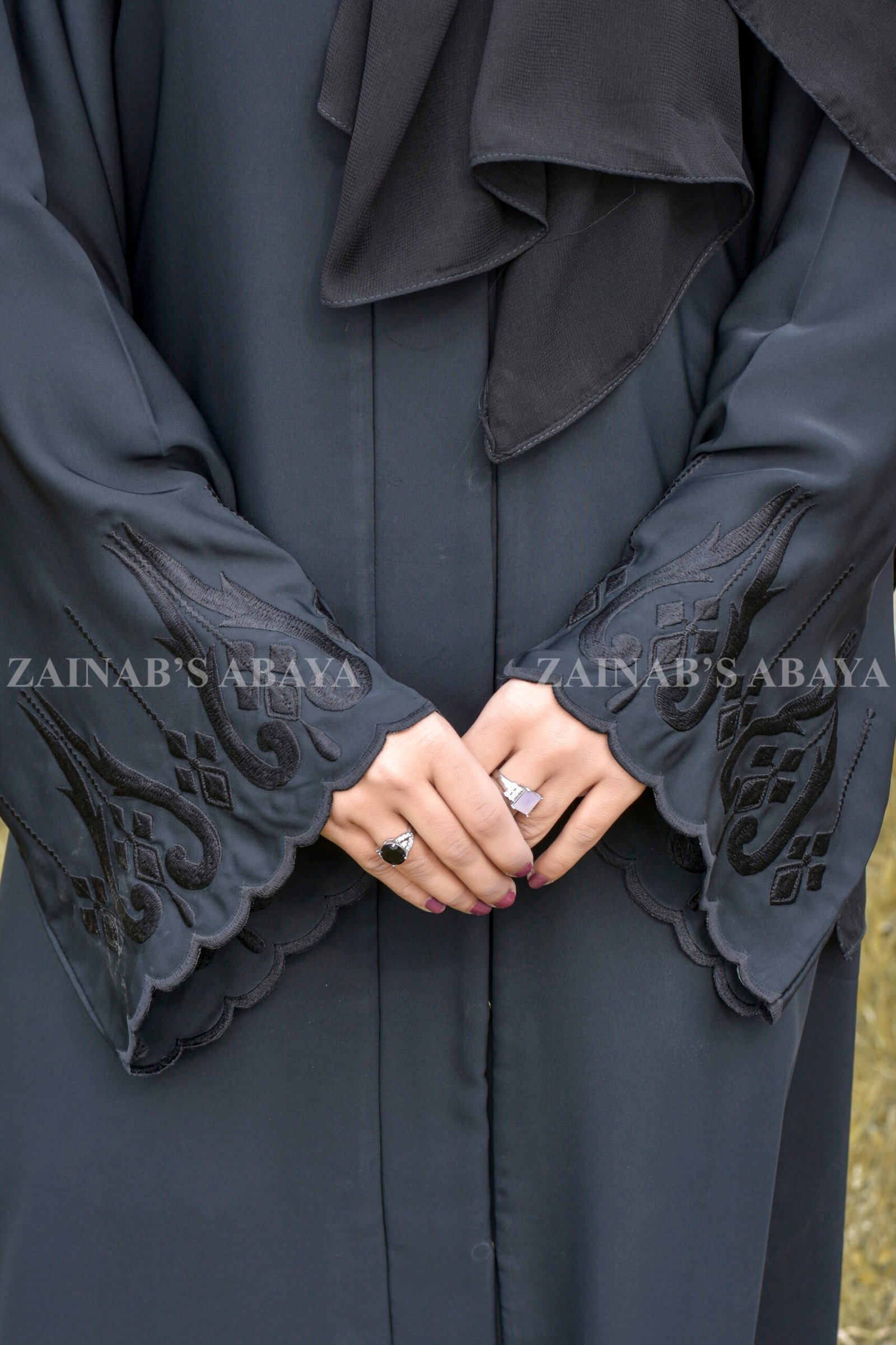Nida Front Open Gown Abaya With Machine Embroidery On Front And Sleeves – 0622