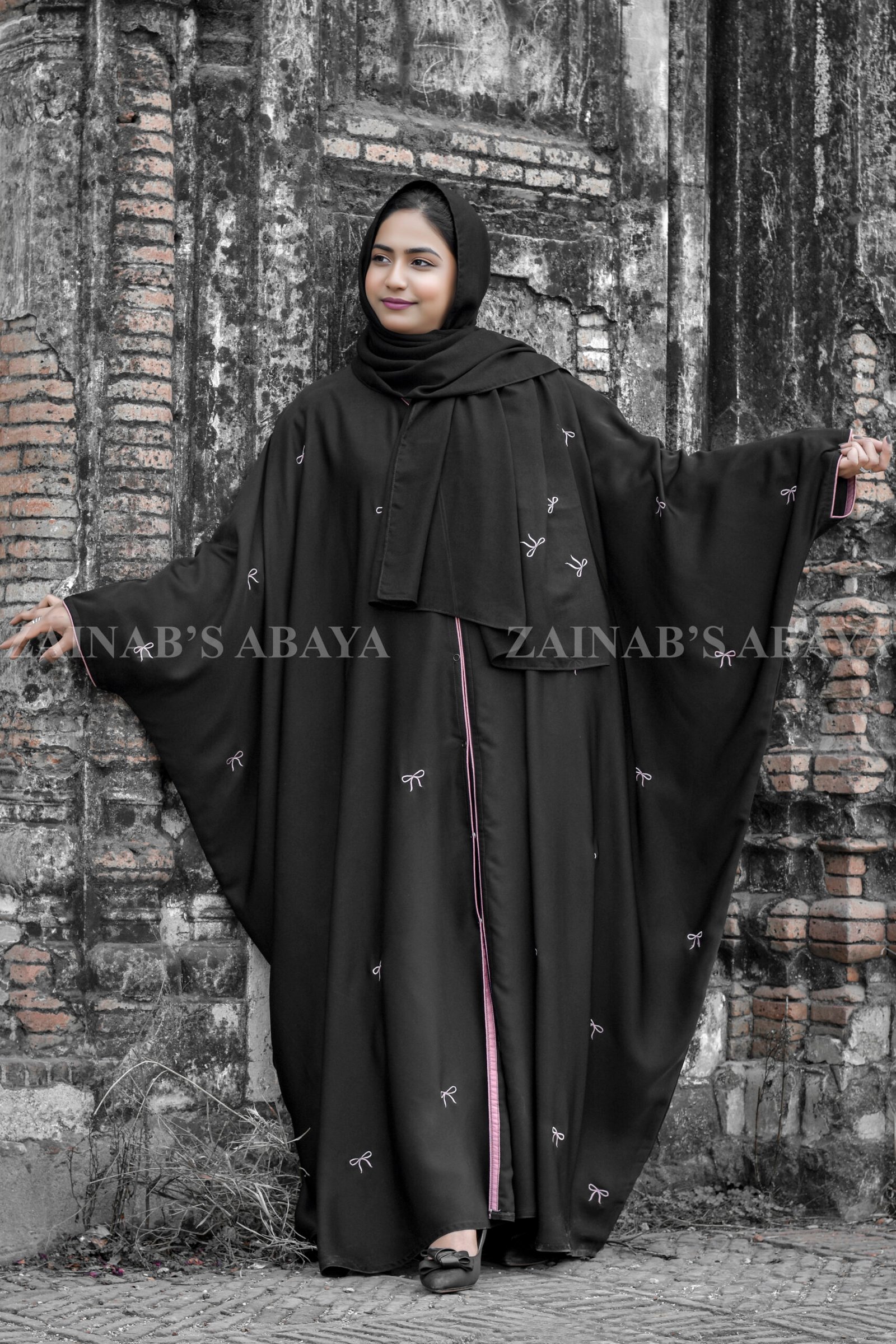 his was my first time ordering online and I was a little nervous, but everything from ordering to delivery went smoothly. The abaya fits perfectly, and the color and bow style is just wow. Thank you for such a great experience.