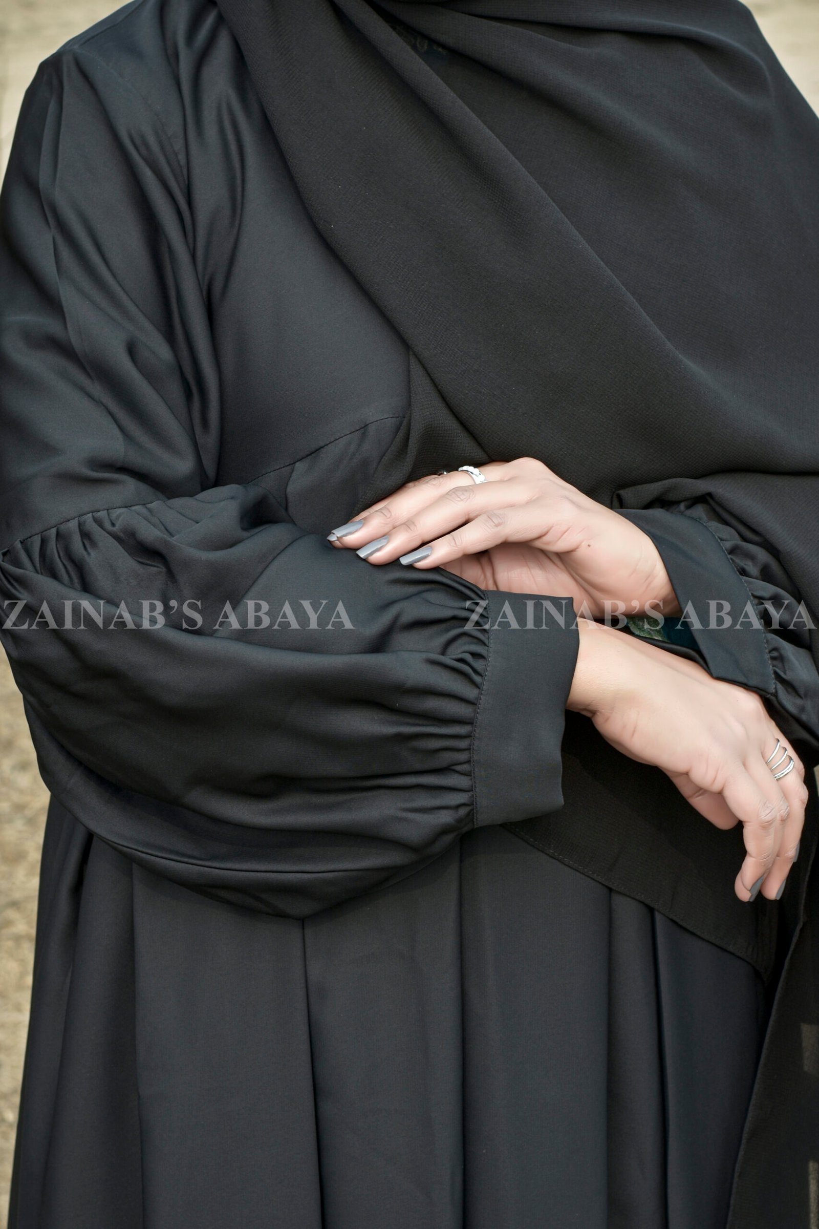 1 review for Black Maxi Abaya in Nida with Plates Style on Front and Sleeves OL-1032