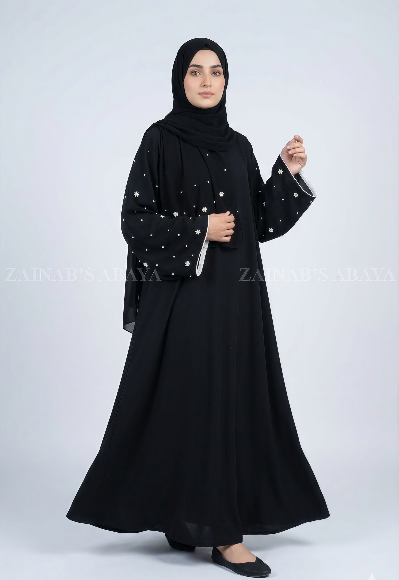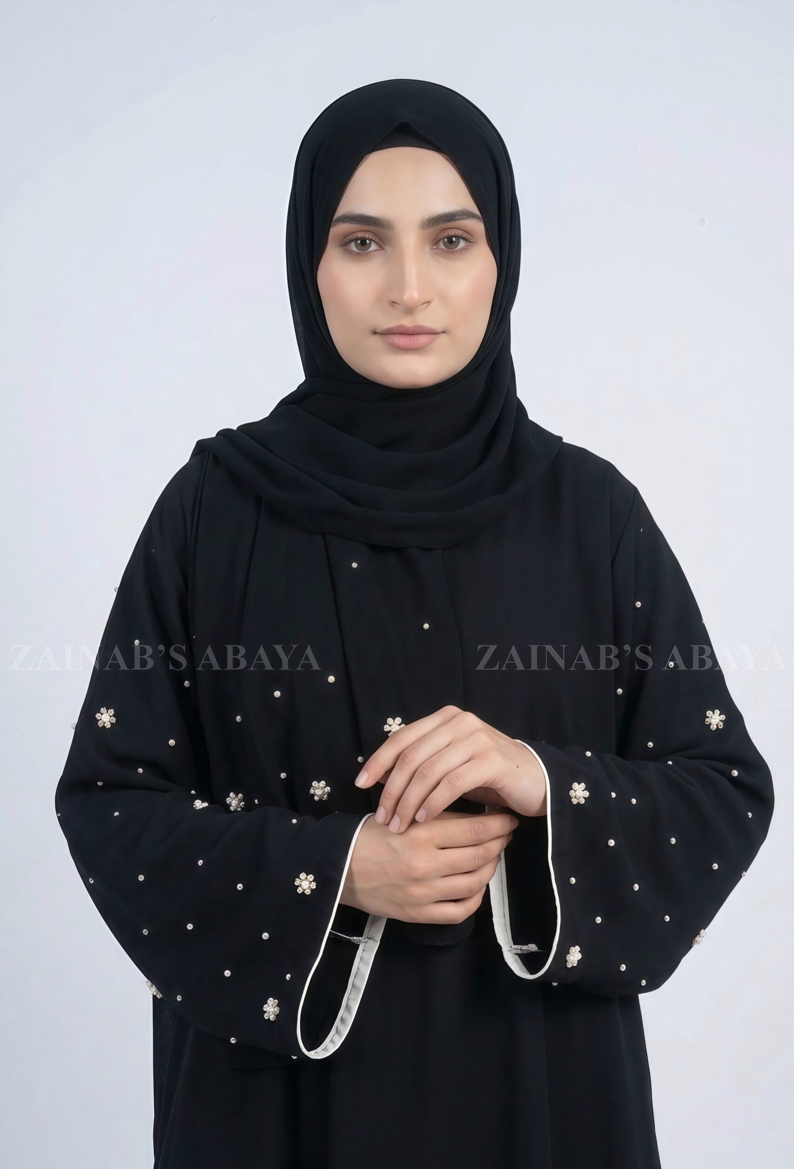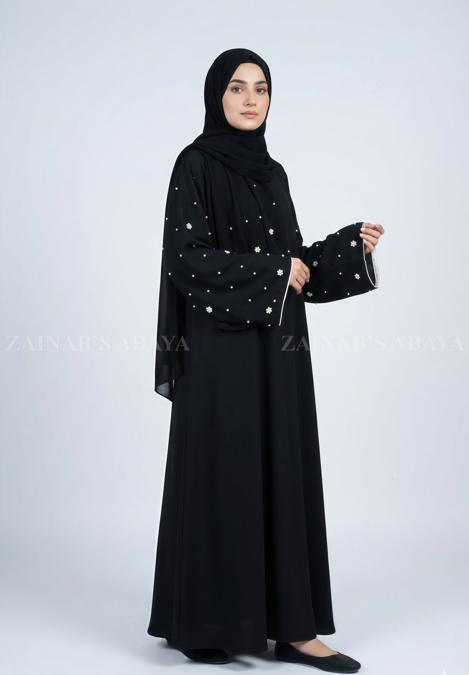 Black Maxi Abaya with Pearl Work on Sleeves OL-1155