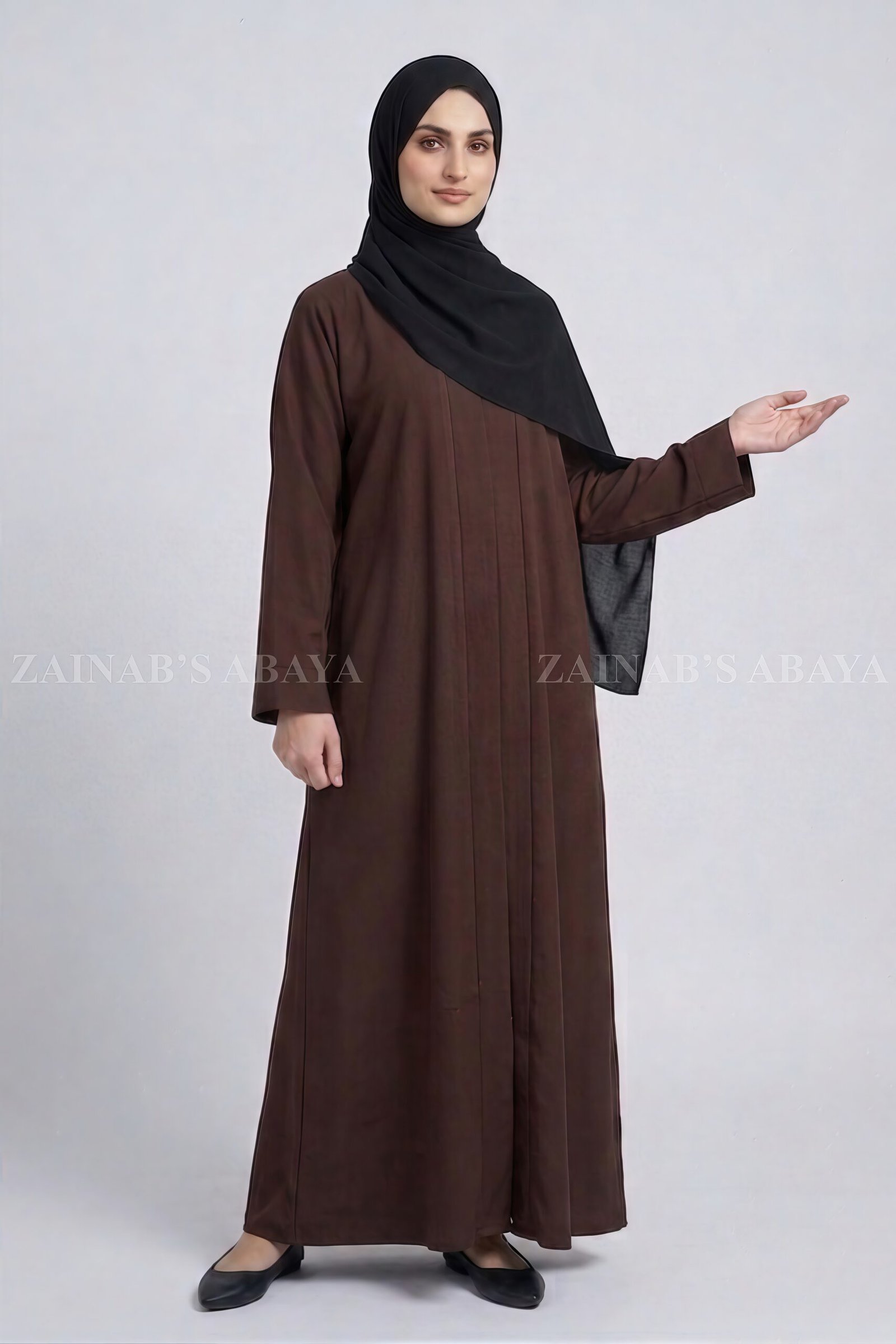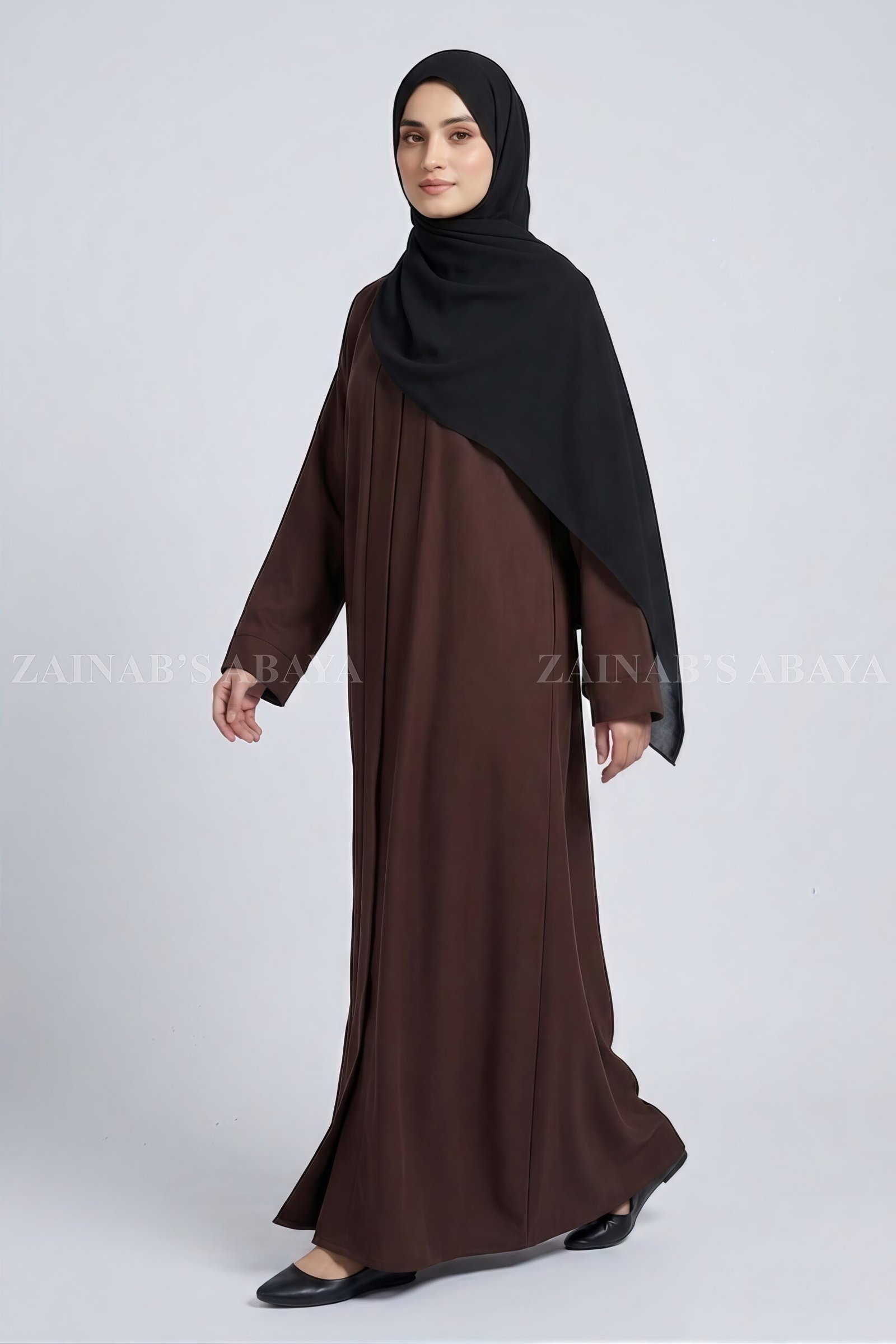 This Brown Color front open abaya for women is a perfect combination of simplicity and elegance. With its premium fabric, soft pleat detailing, and versatile front open style, it delivers both comfort and timeless appeal.