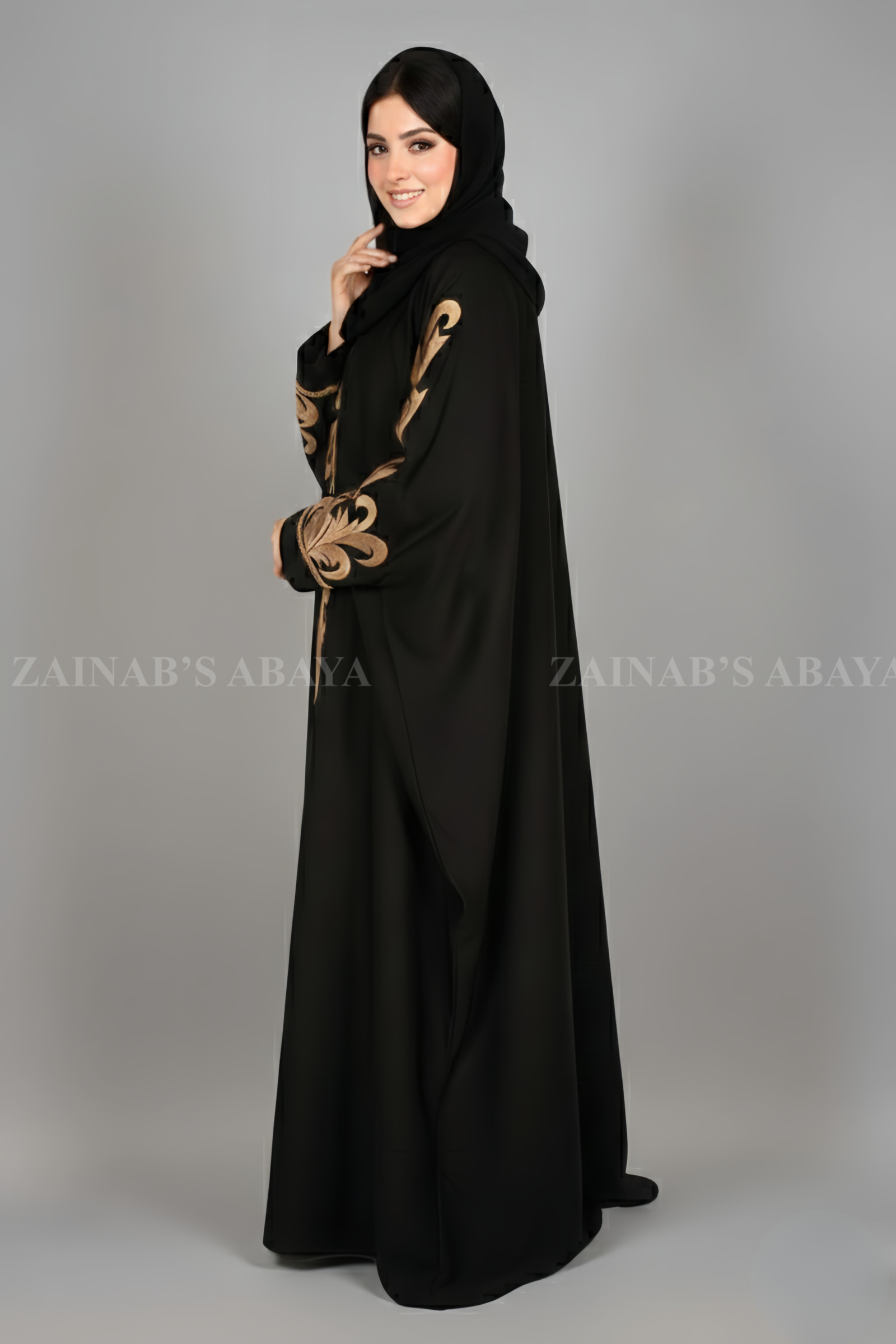 New Butterfly Abaya with Embroidery On One Side Front And Sleeves – 0456
