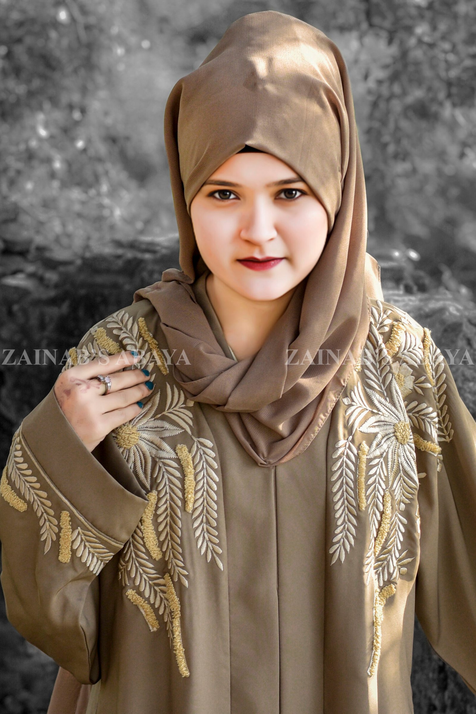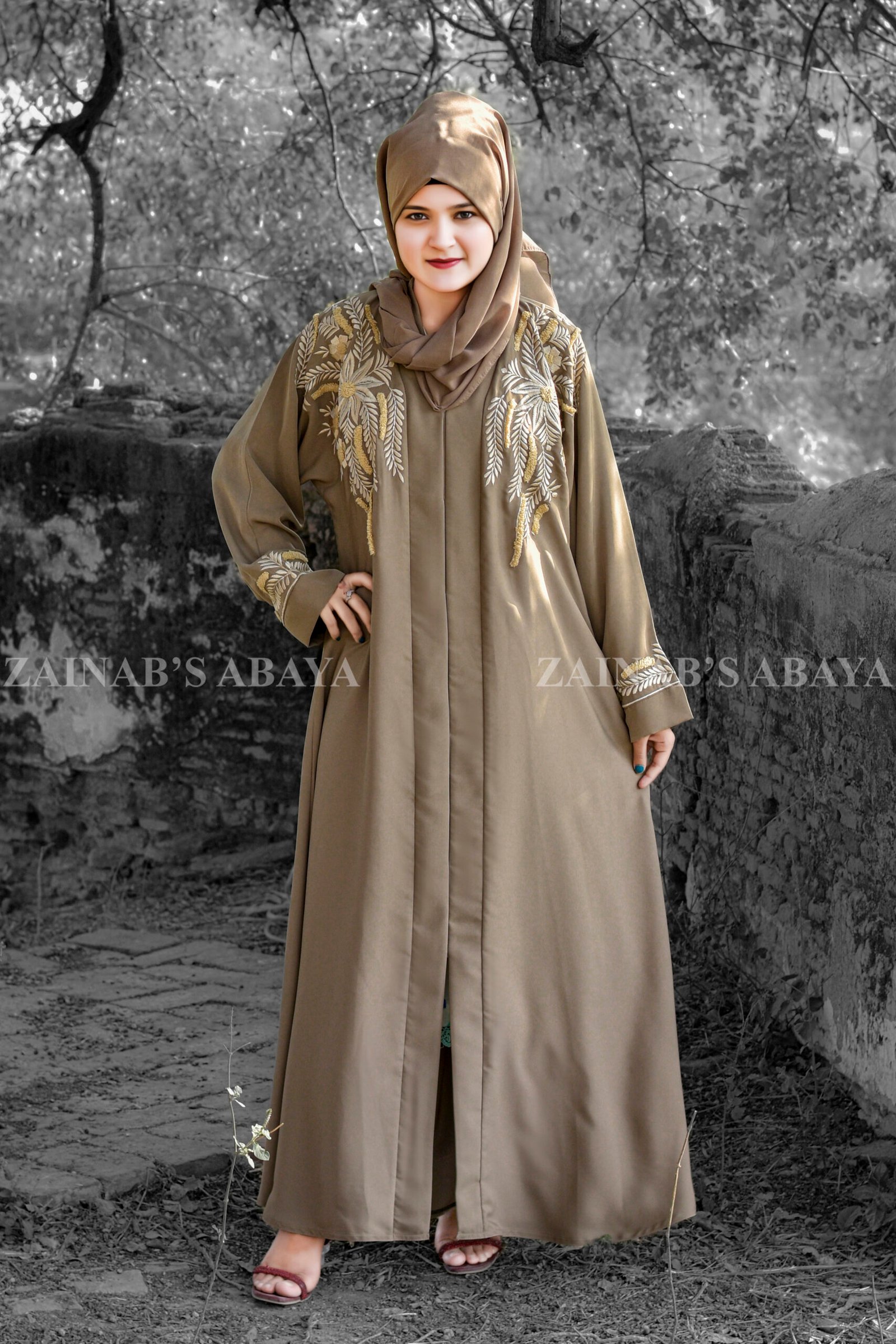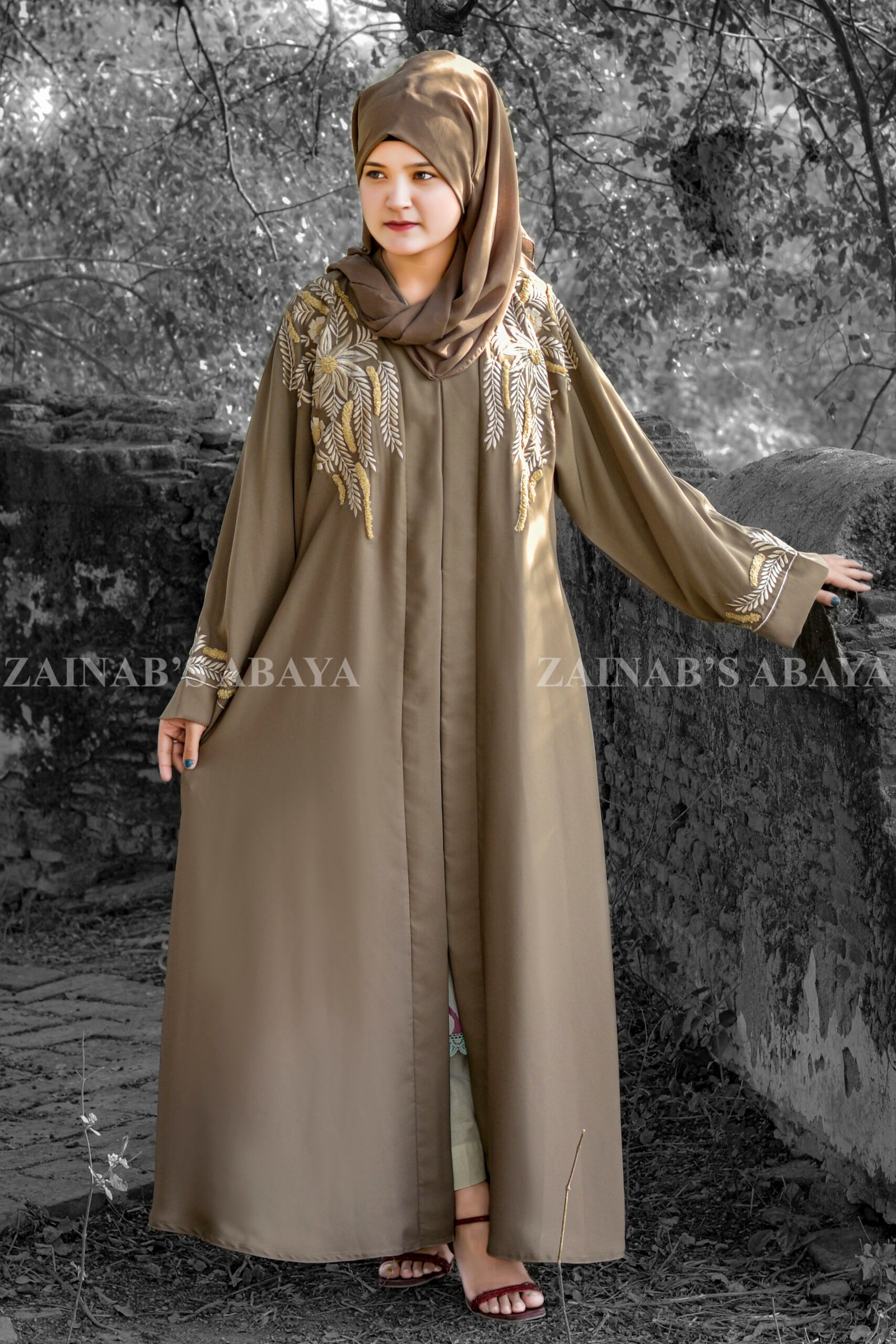 2 reviews for Chic Front Open Abaya in Skin Color With Embroidery OL-136