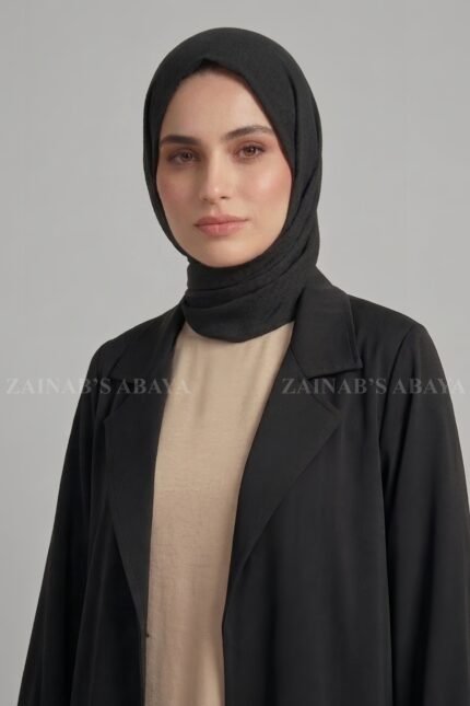 This Coat Style Abaya for women is crafted with Premium Nida Korean Fabric. This abaya has a smart coat style. It features buttons on the front and sleeves. Includes a matching chiffon scarf. Inner is not included.