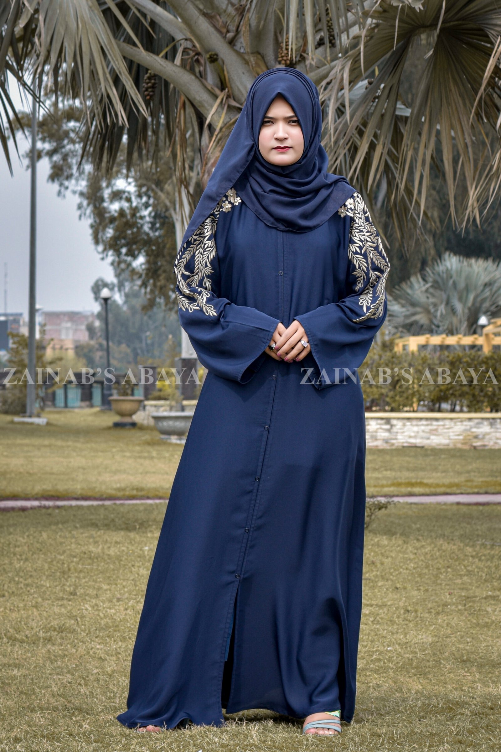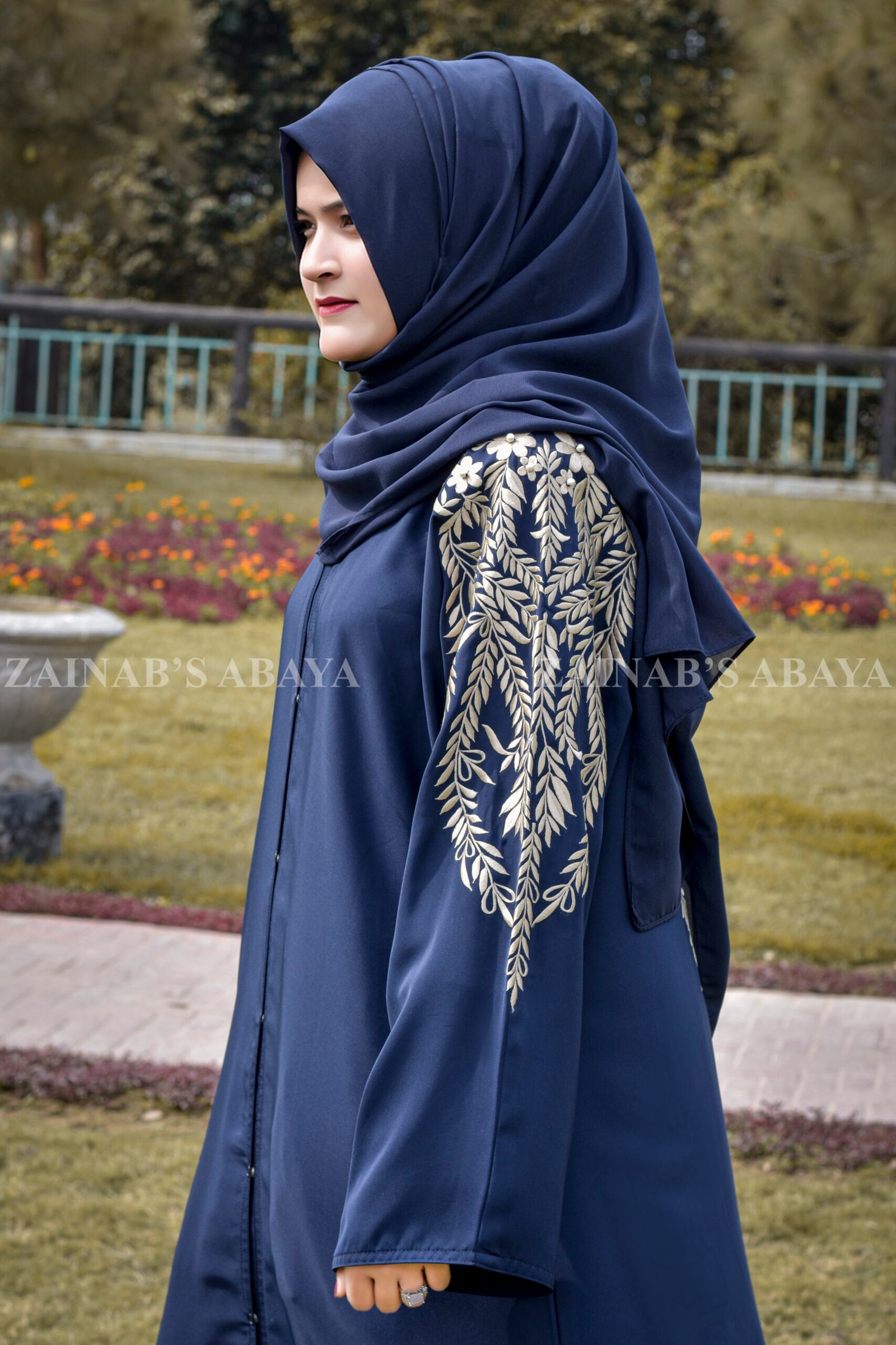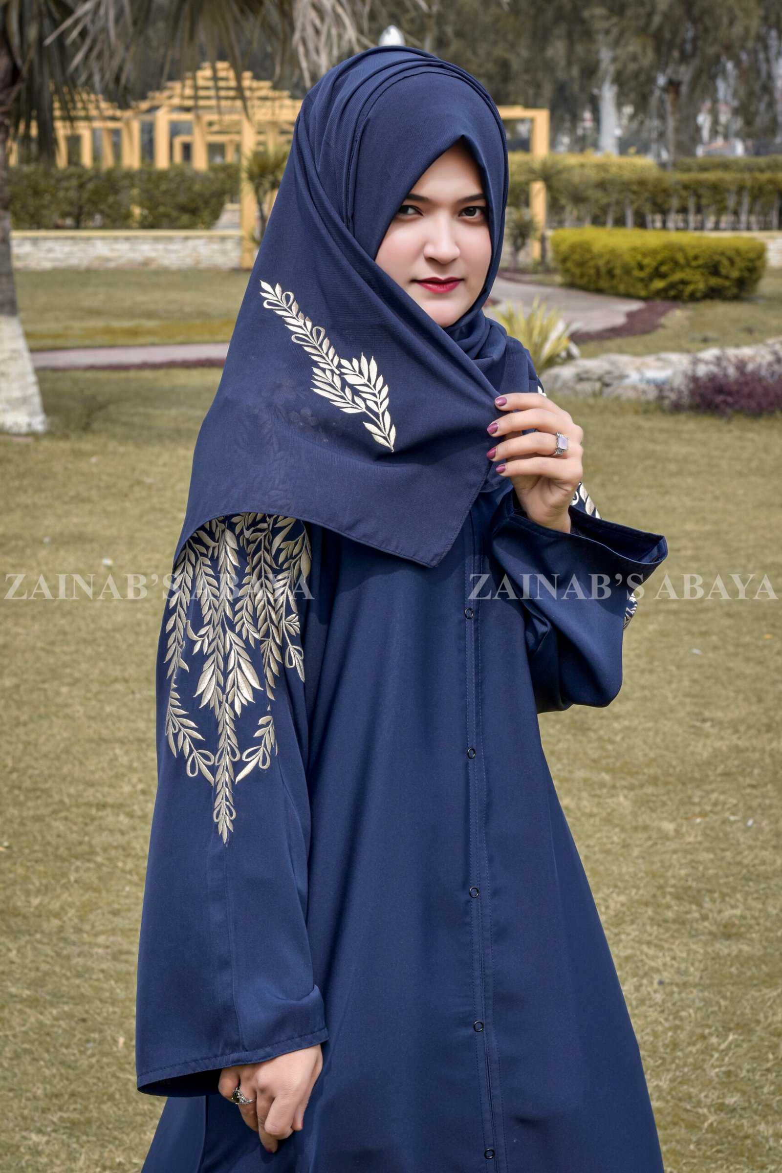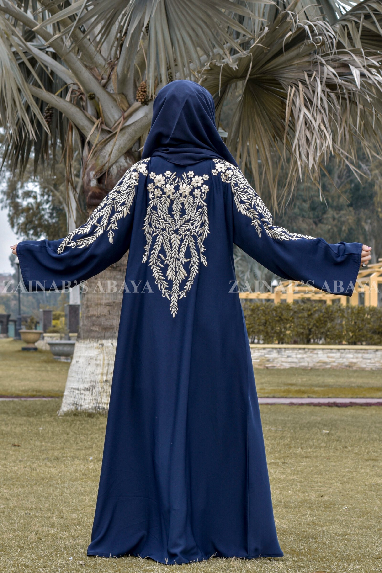 3 reviews for Embroidered Maxi Abaya in Navy Blue OL-0362