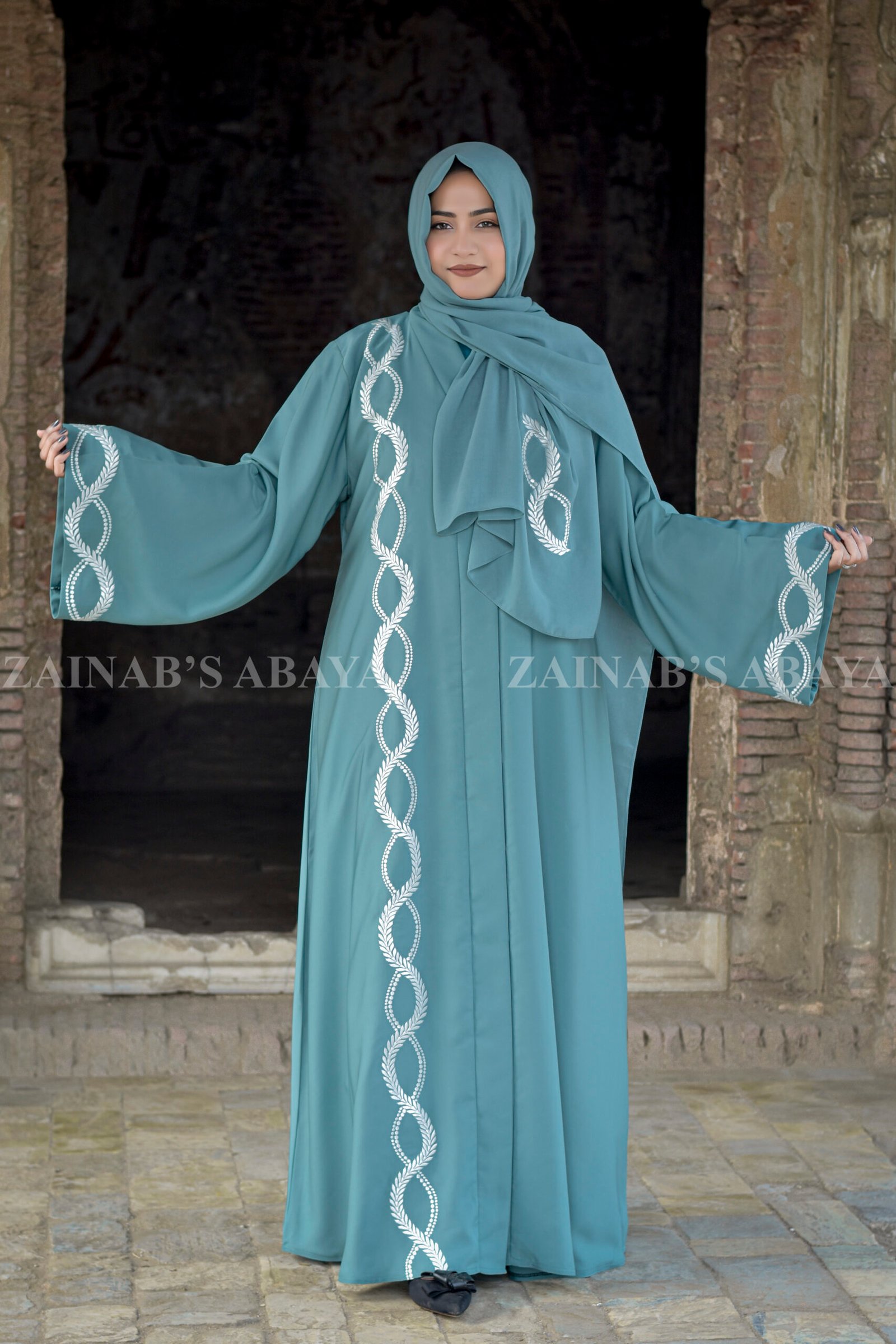 3 reviews for Front Open Abaya with Embroidery on Front and Cuffs OL-1036