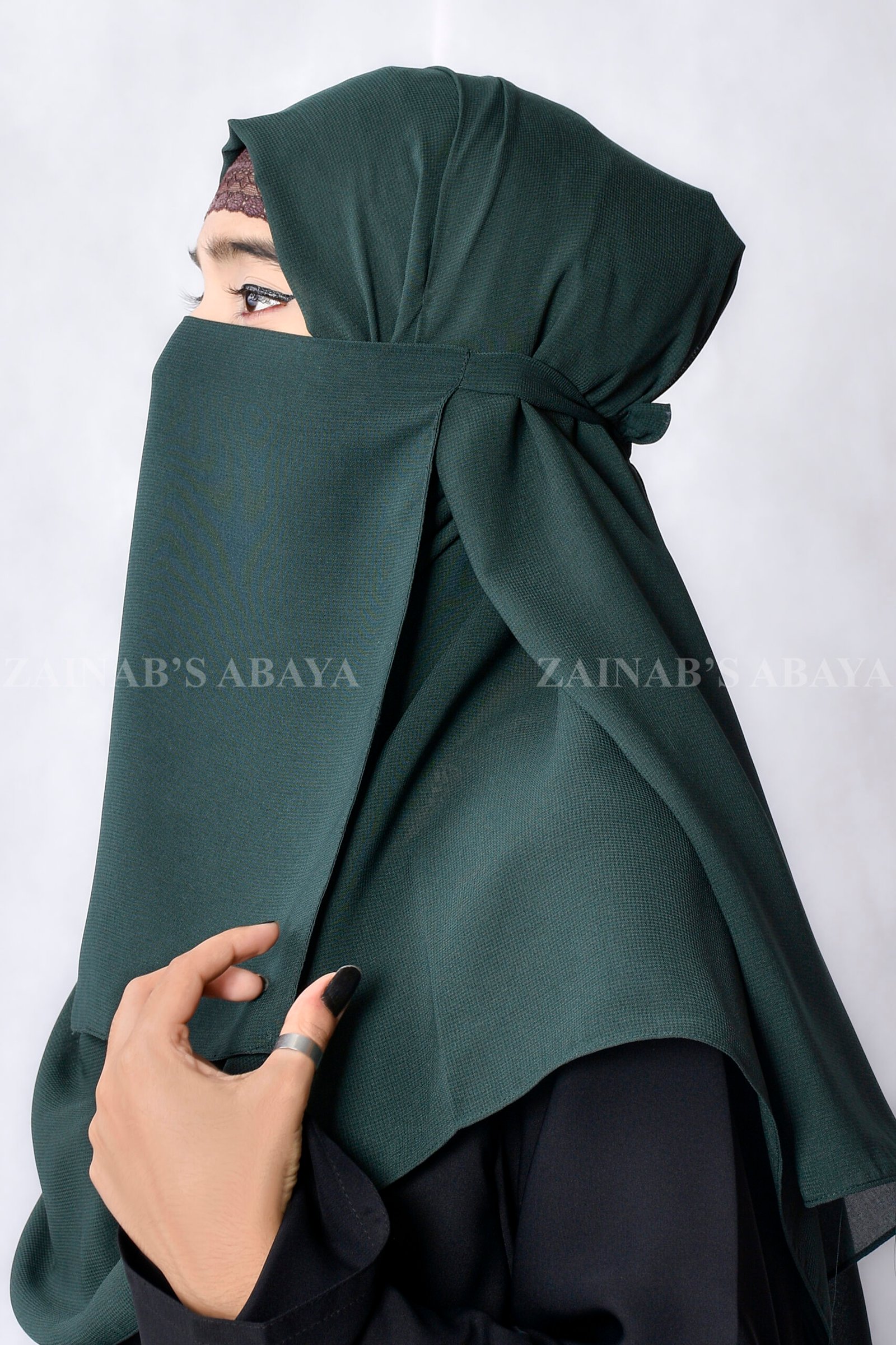 Elegant Green color chiffon nose niqab from Zainab Designer Abaya, the top abaya brand in Pakistan. Soft, breathable, and lightweight – ideal as a niqab for girls. Best option for those looking for a cheap niqab in Pakistan or to buy niqab online in Pakistan.