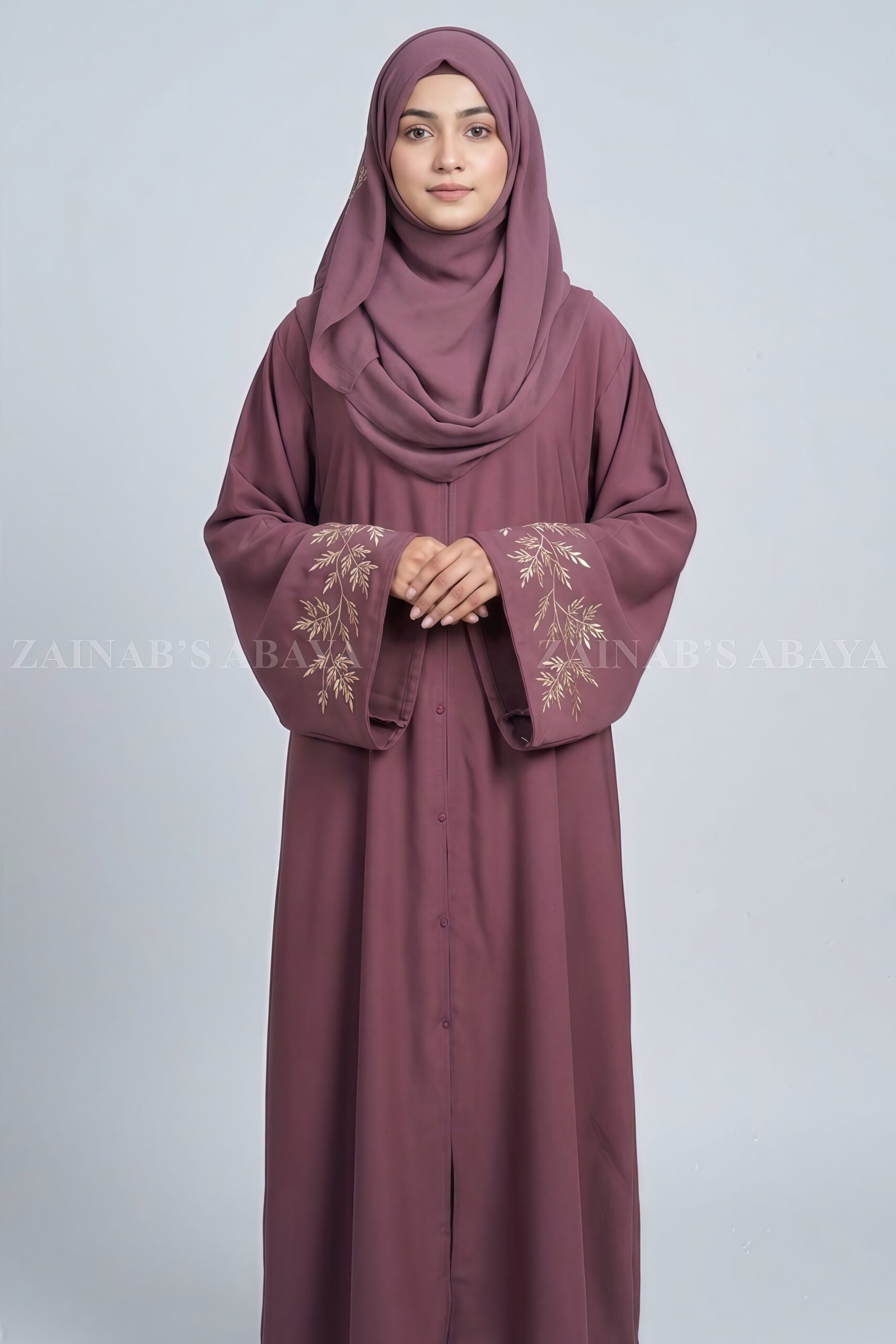 Kasni Colored Front Open Abaya with Embroidered Sleeves OL-1149