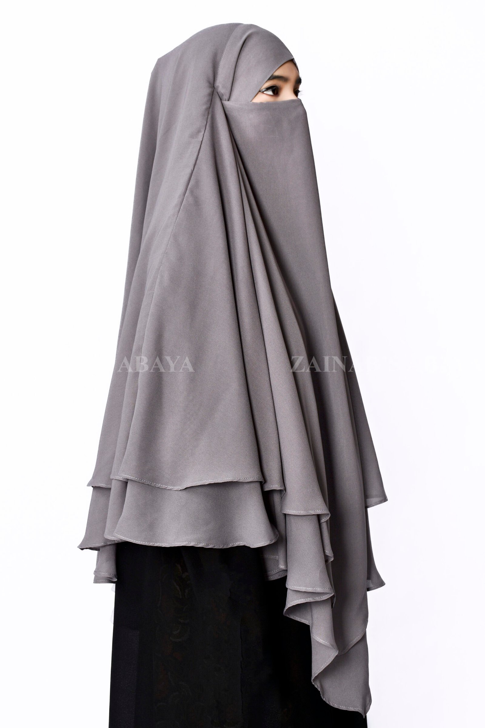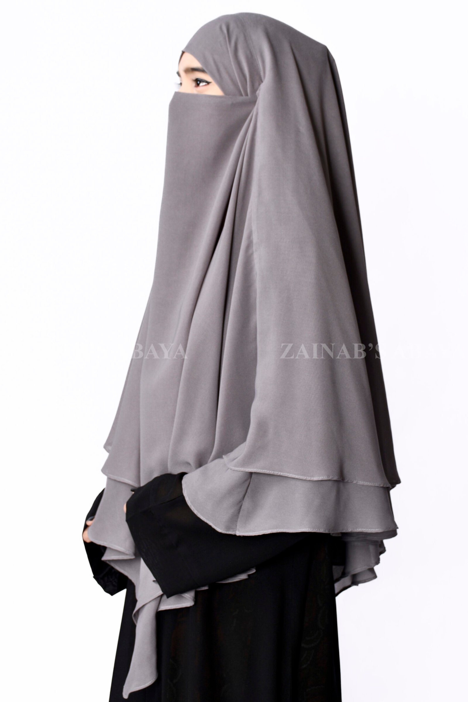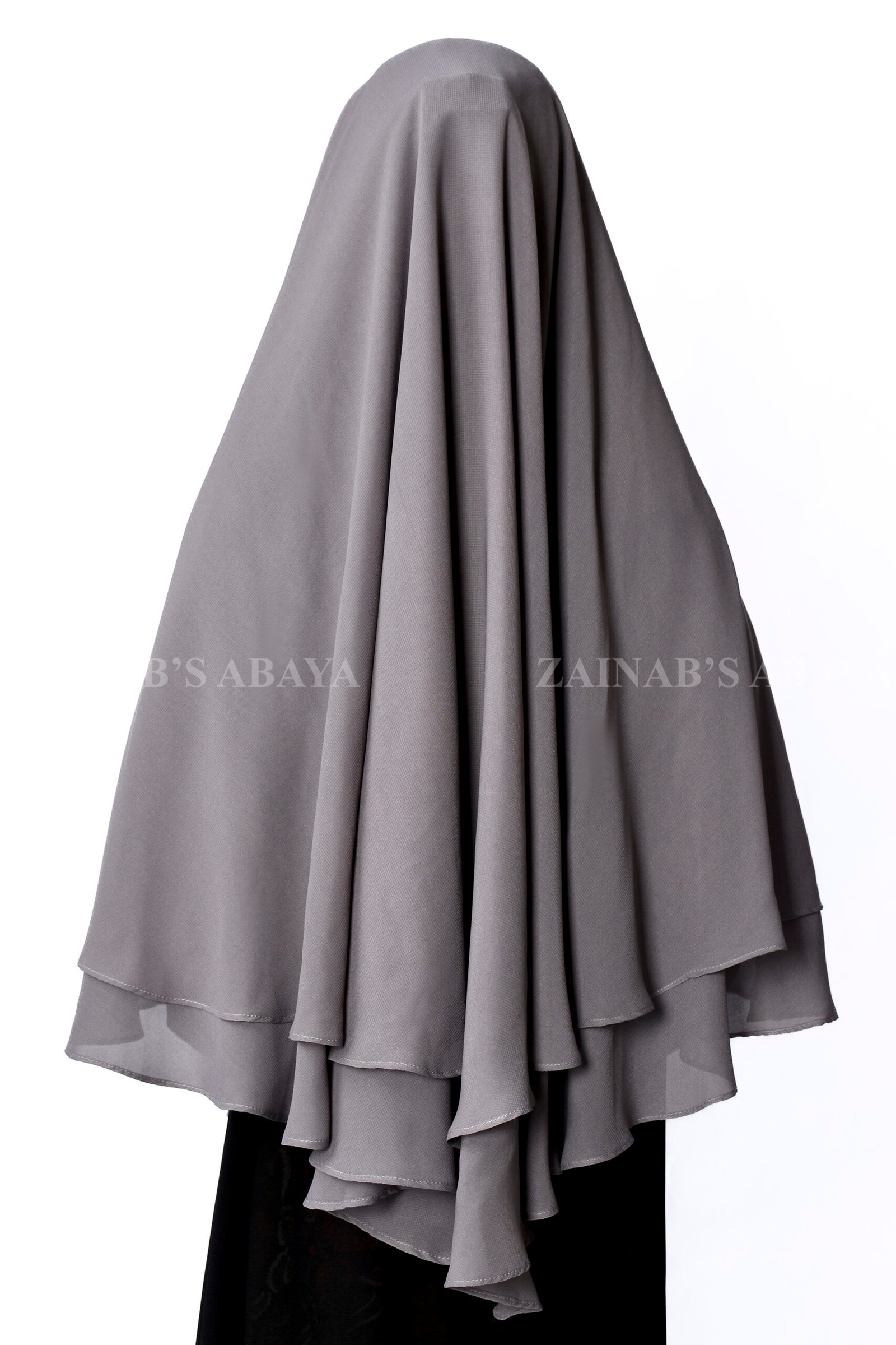 Light Grey Color Khimar Hijab in Two Layers Chiffon Acc-315