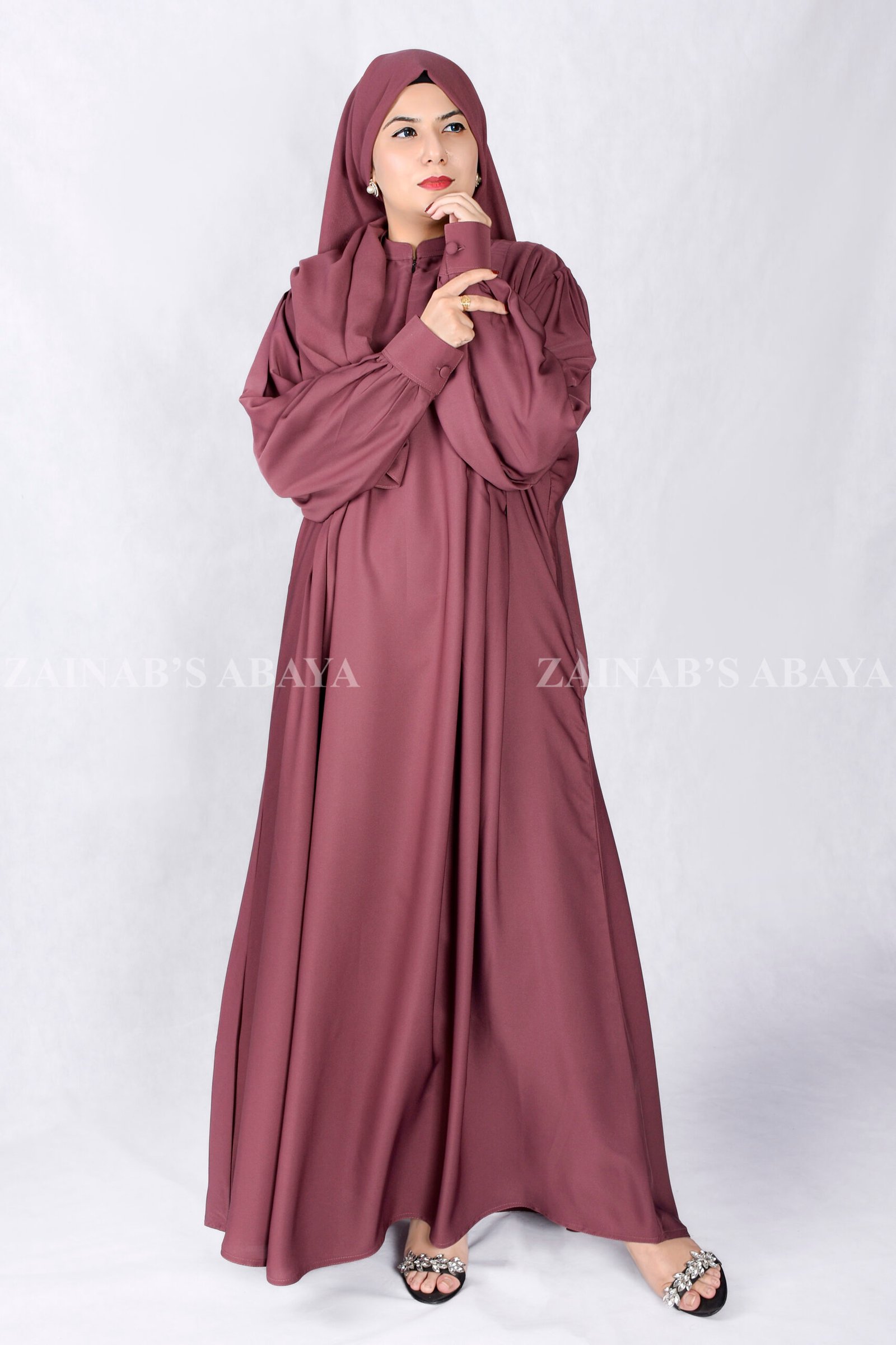 This Maxi Abaya with Plates, Cuff Sleeves & Neck Zip is made up of Nida Korean Fabric. It features plates design on the sleeves, cuff-style sleeve ends, a zip at the neck for easy wear. Includes a matching scarf in Chiffon Fabric.