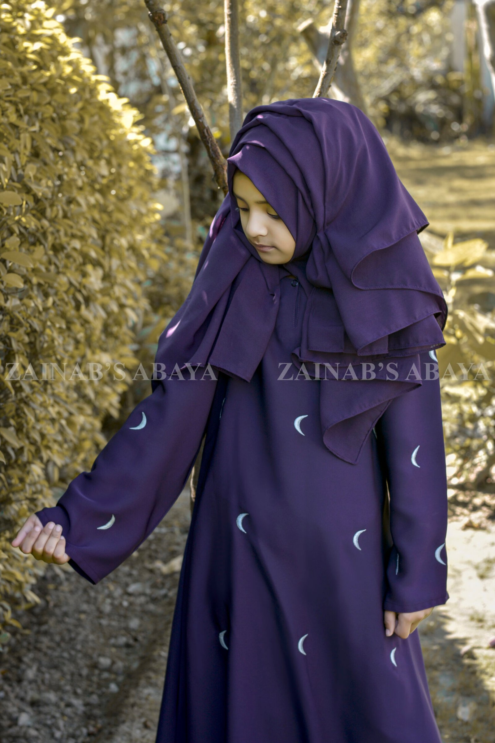 Moon Embroidery Maxi Abaya for Kids J-106