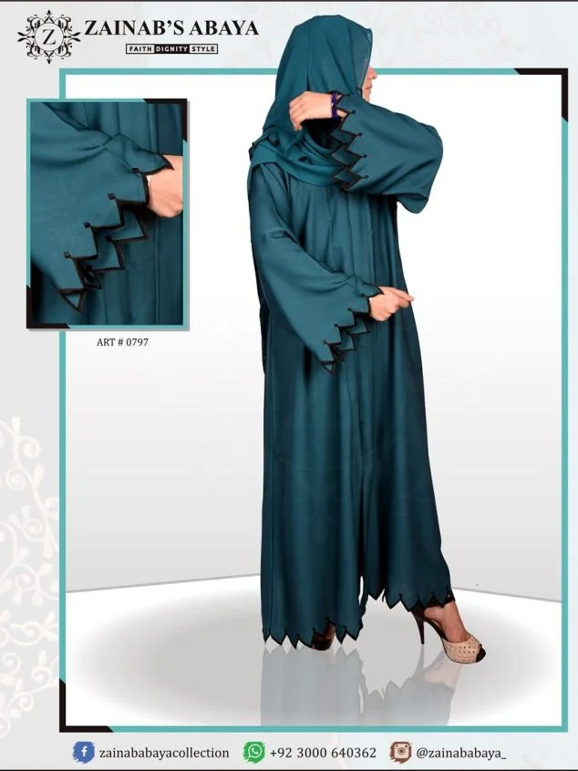 Imagine a flowing gown with stunning, hand-cut embroidery on the sleeves. That’s our Nida Front Open Gown Abaya! It’s like wearing a piece of art. The intricate details add a touch of luxury, while the open front keeps it modern and chic.