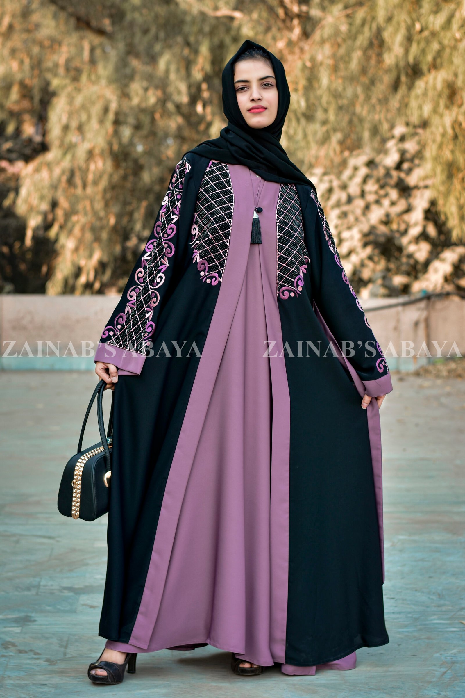 Jilbab Abaya with Embroidery in Two Piece OL- 1017