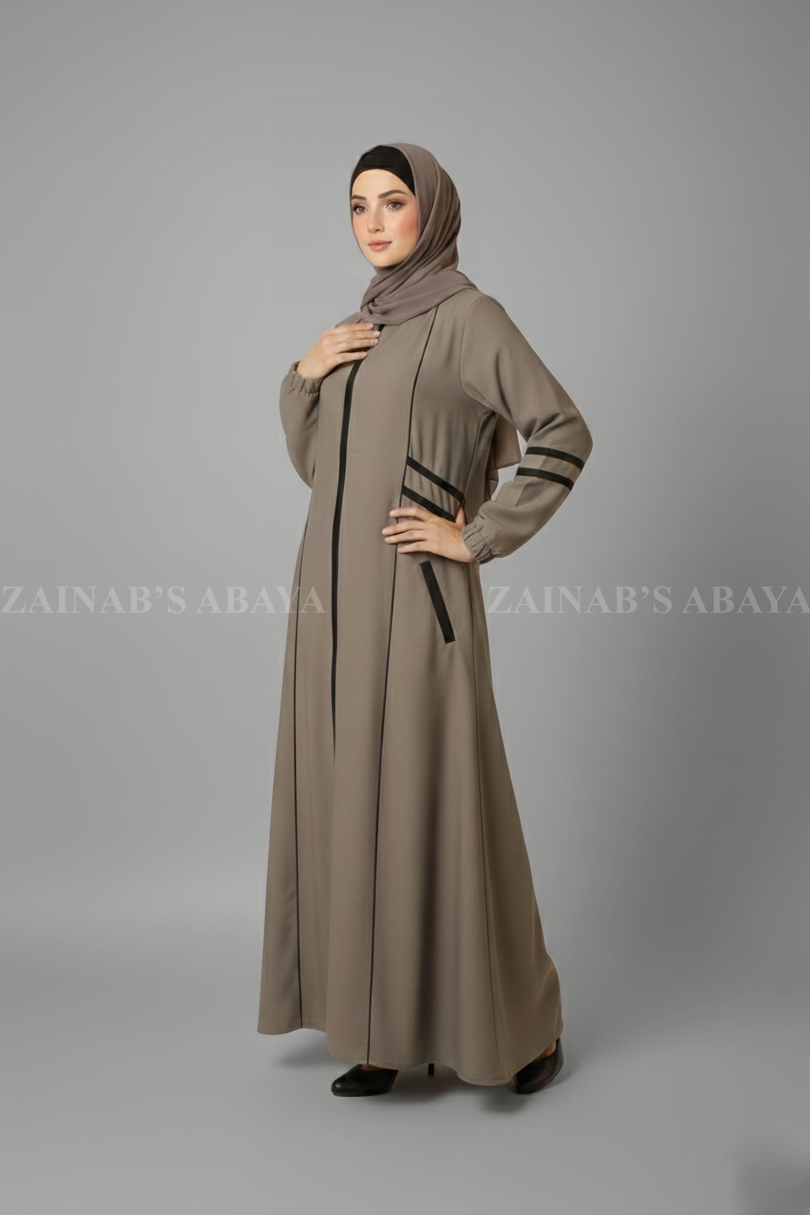 Nida Plain Maxi Abaya with Two Pockets and Piping – 0961