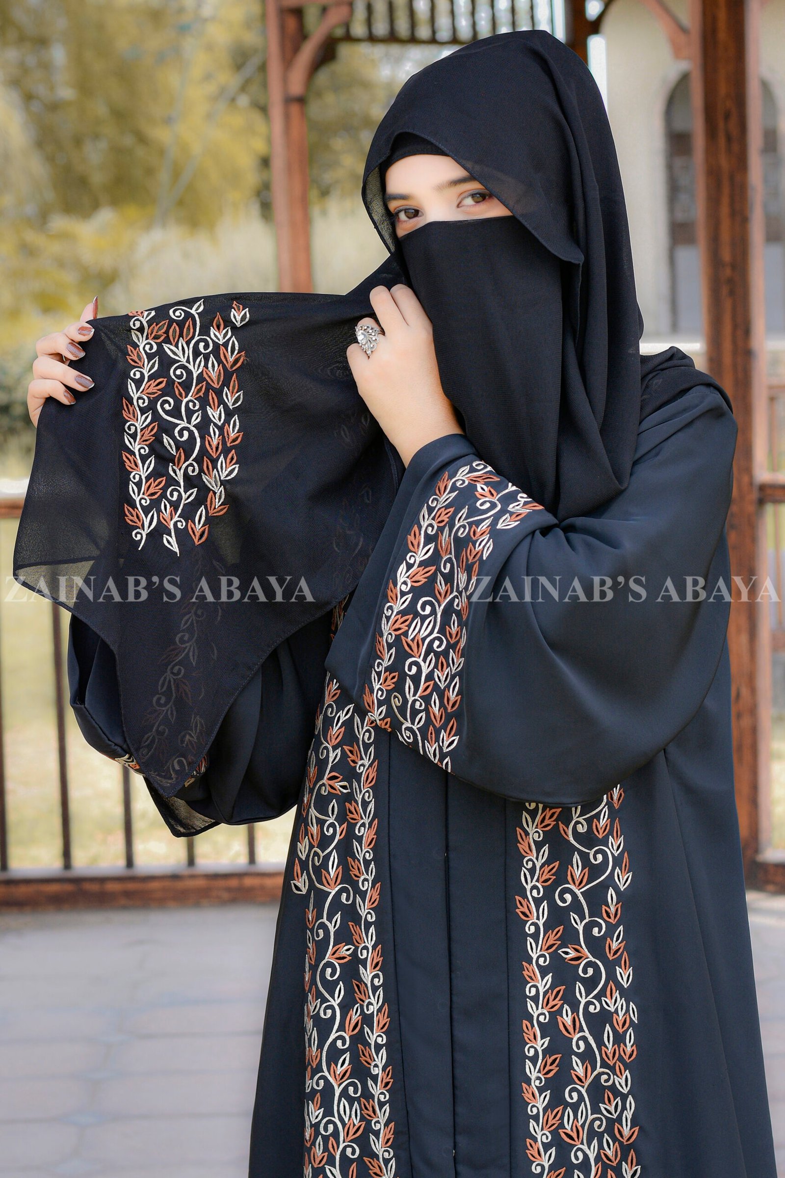 ₨ 7,850Nida Front Open Abaya with Embroidery On Front And Sleeves – 0466