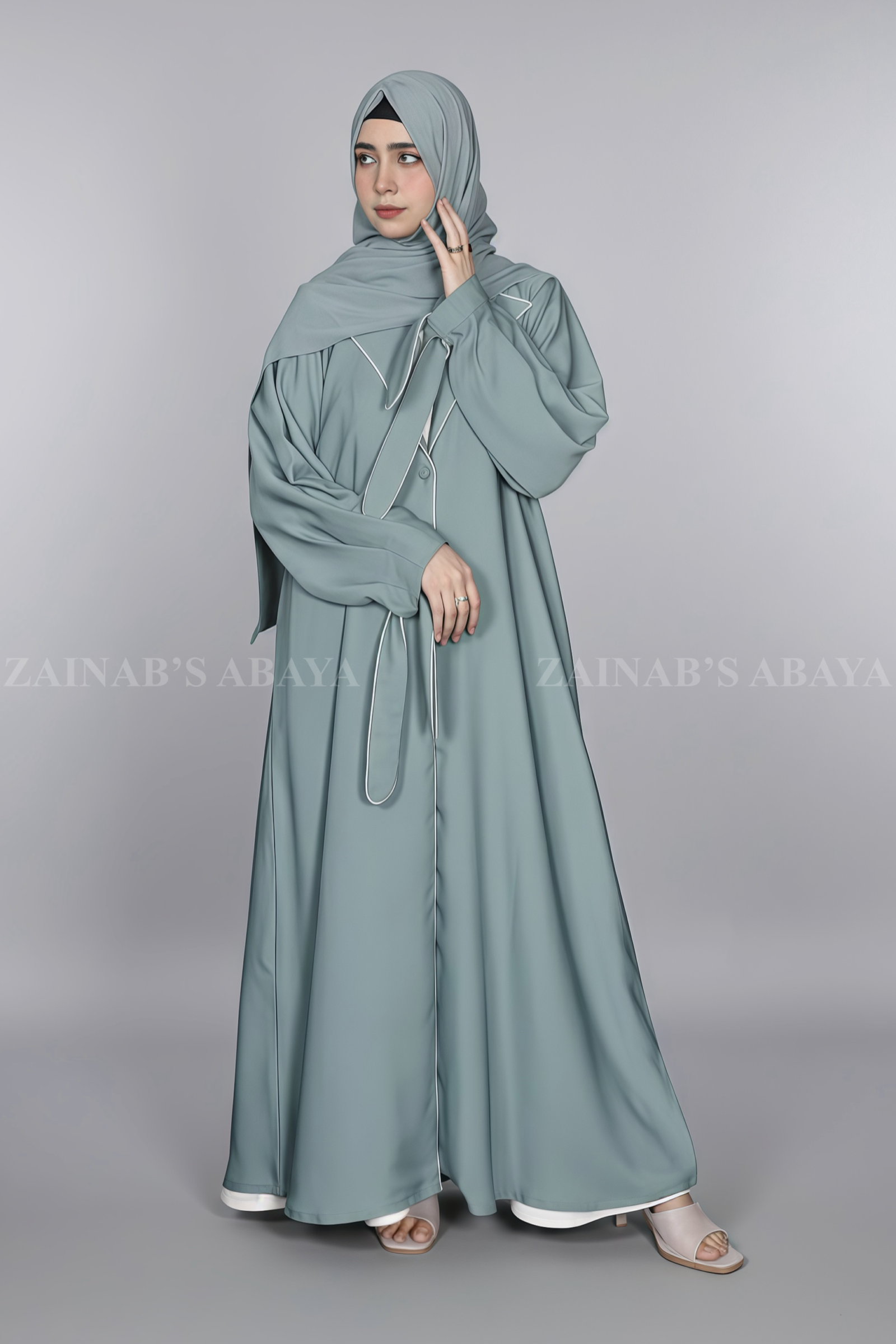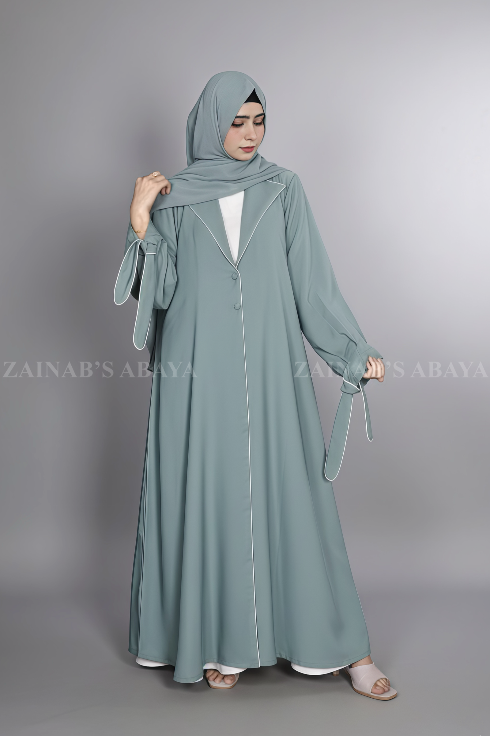 Nida Coat Style Abaya With Piping on Front OL-1125