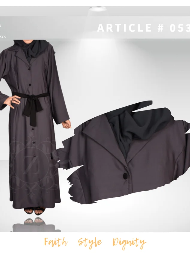 Our Nida Coat Style Abaya combines the comfort of Nida fabric with the modern elegance of a coat silhouette. The sleek black belt adds a touch of sophistication, cinching the waist and creating a flattering silhouette.