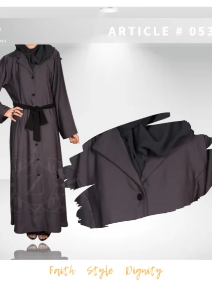 This Coat Style Abaya with Piping is made from soft Nida Korean fabric. This abaya has a smart coat style. It features clean piping on the front and comes with a matching chiffon scarf.