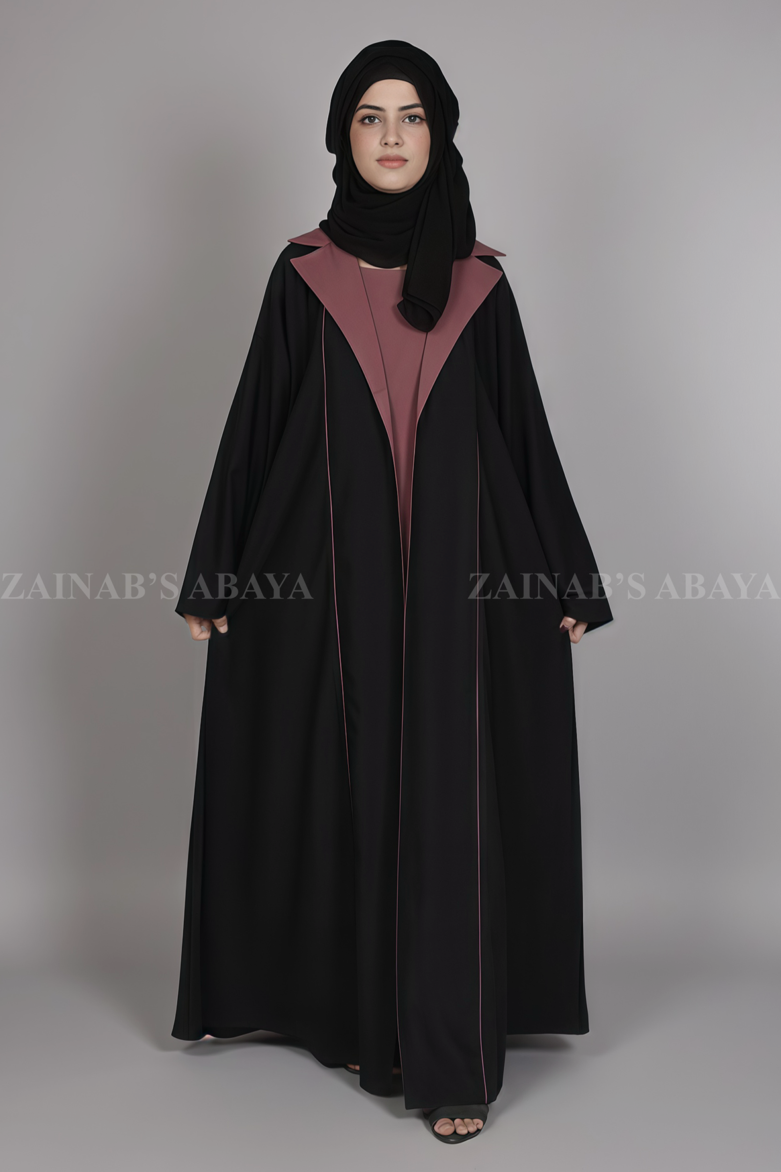 2 reviews for Nida Coat Style Abaya With Piping on Front OL-1125