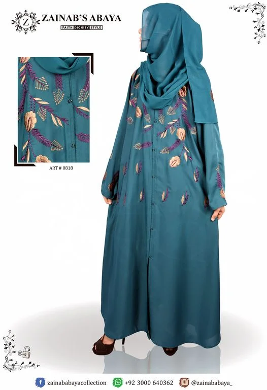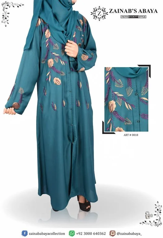 Our Nida Front Open Gown Abaya is a stunning piece that combines the comfort of Nida fabric with the elegance of intricate embroidery. The delicate embroidery on the front and cuffs creates a captivating visual, while the open front design adds a touch of modernity.