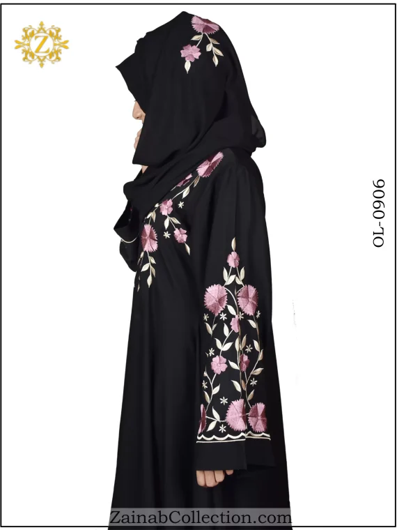 Nida Color Maxi Abaya, Machine Embroidery On Both Sides And Sleeves – 0906