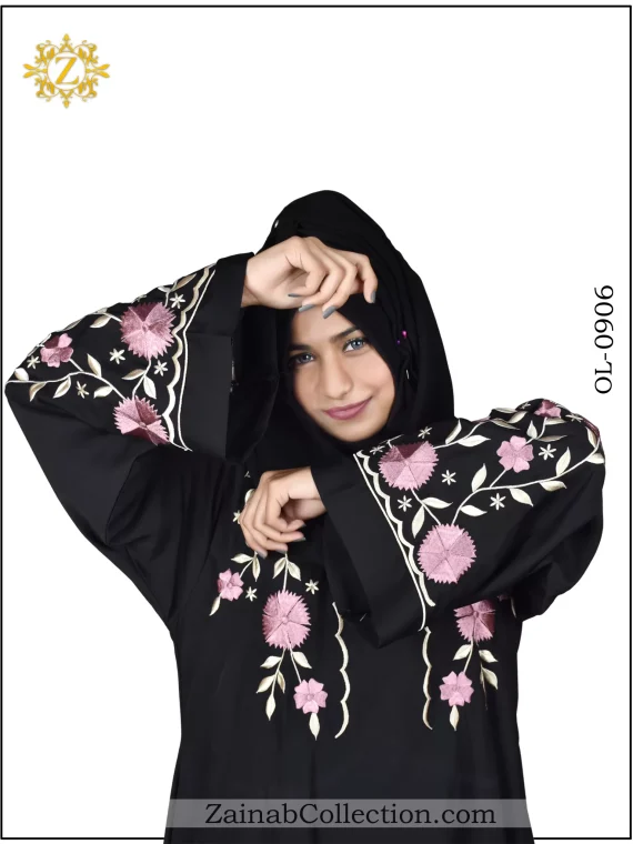 Stylish color maxi abaya with embroidery on both sides of sleeves. The Nida Color Maxi Abaya with Embroidery on Both Sides of Sleeves from the Zainab Designer Abaya Collection is an impeccable choice for the woman who appreciates a blend of traditional charm and modern sophistication.