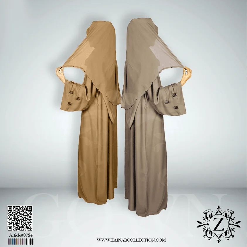Nida Colored Gown Abaya With Beautiful Pearl Work On Front Side And Both Sleeves – 0724