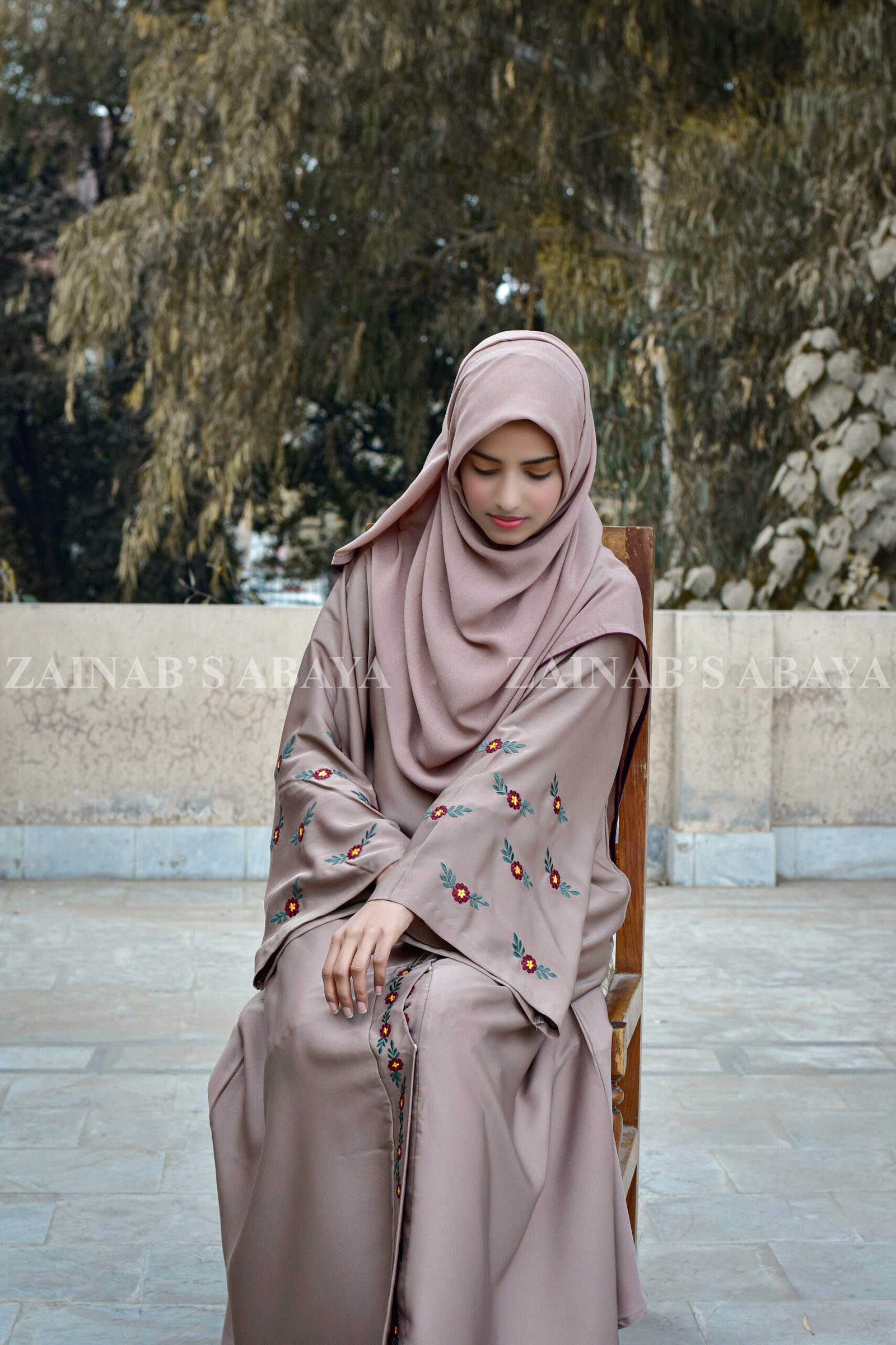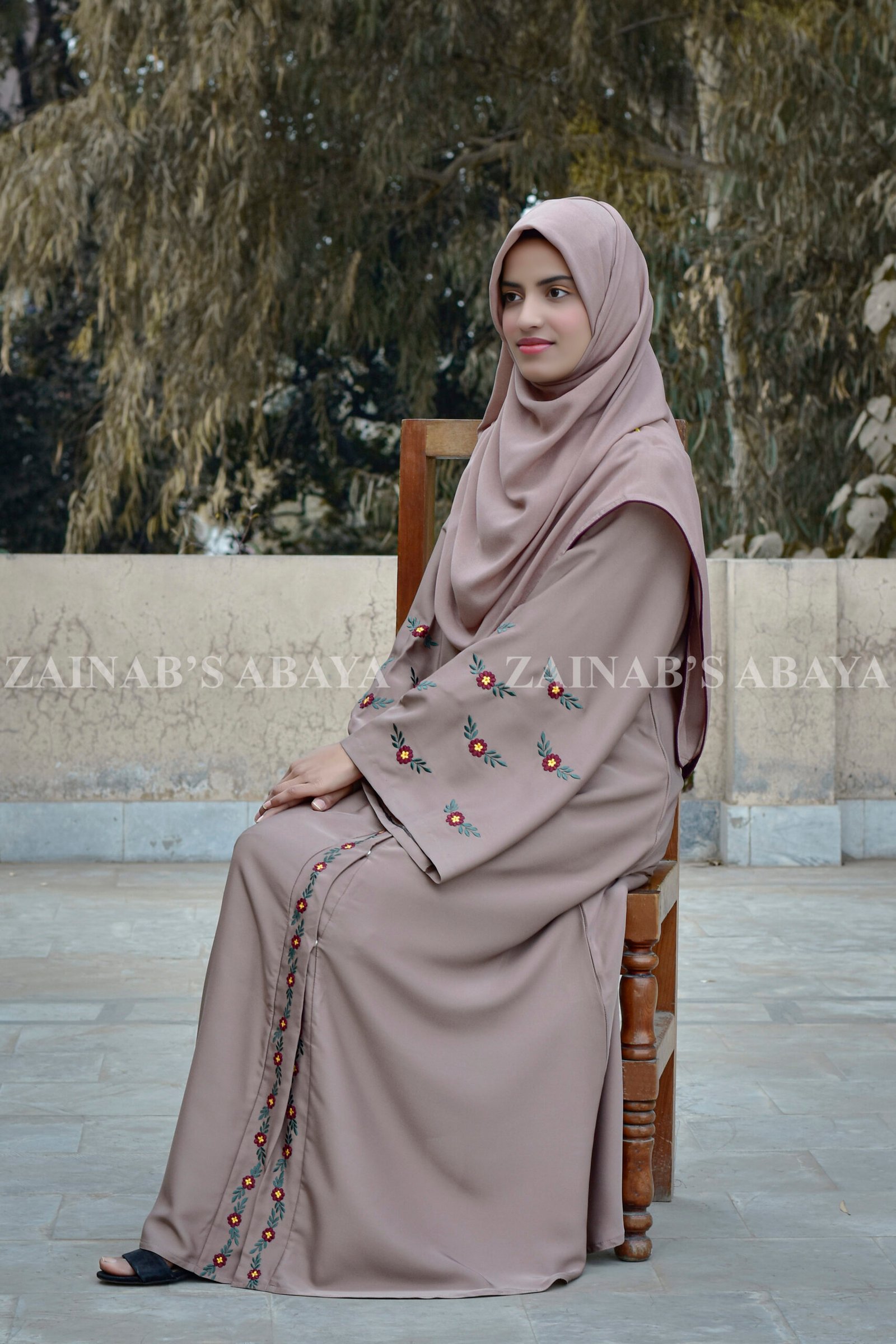 This light brown front open abaya is crafted from premium Nida fabric, offering a luxurious and elegant look. The front and sleeves feature vibrant multi-colored floral embroidery, adding a lively and sophisticated touch. Perfect for any occasion, this abaya combines modern style with timeless charm.