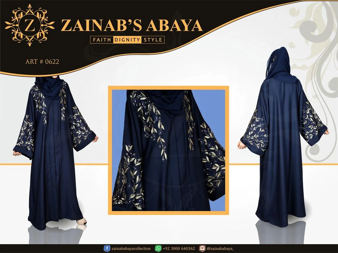 Nida Front Open Gown Abaya With Machine Embroidery On Front And Sleeves – 0622