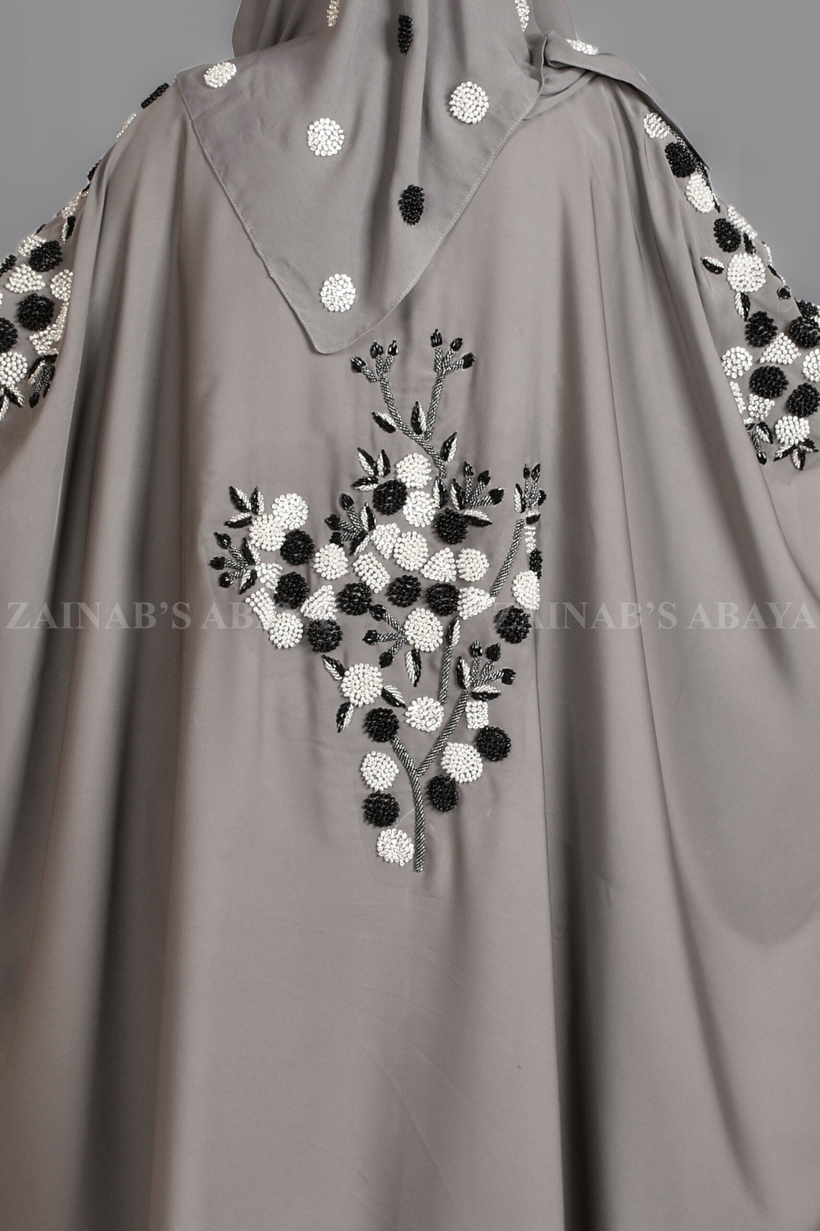 This Kaftan Abaya with Stone Detailing is crafted with Premium Nida Korean Fabric. This elegant kaftan abaya has shiny stone work on the front, sleeves, and back. Includes a matching chiffon scarf with the same sparkling stones.