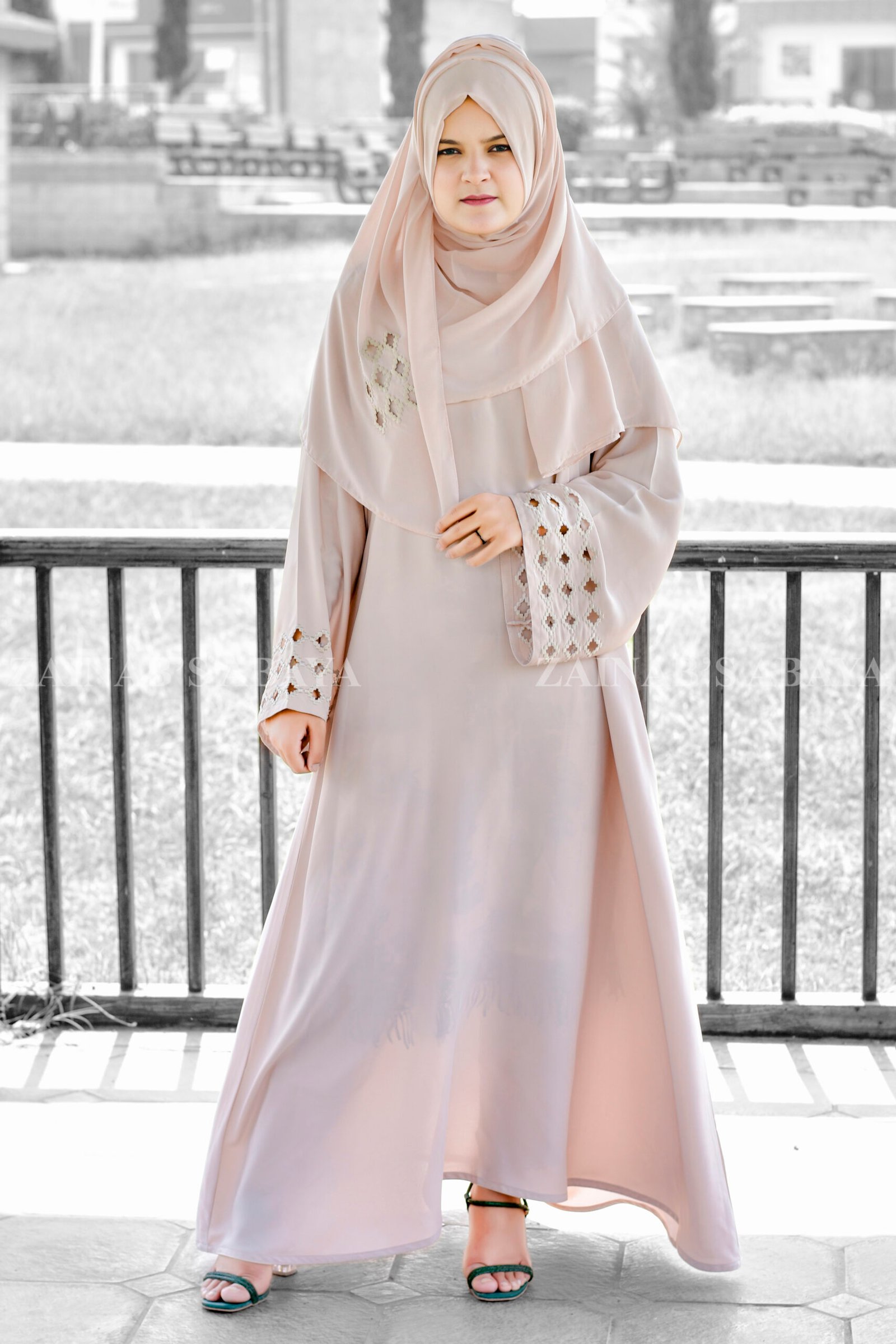 Nida Maxi Abaya with Embroidery & Cut Work on Sleeves OL-717