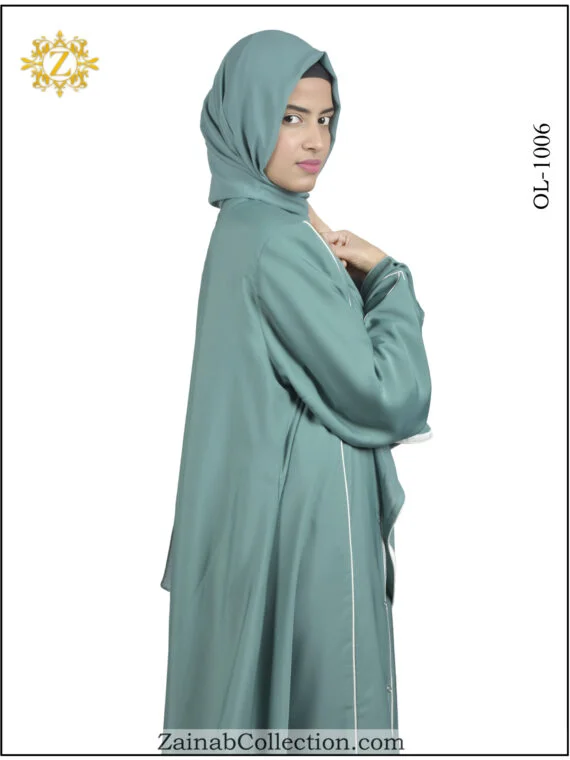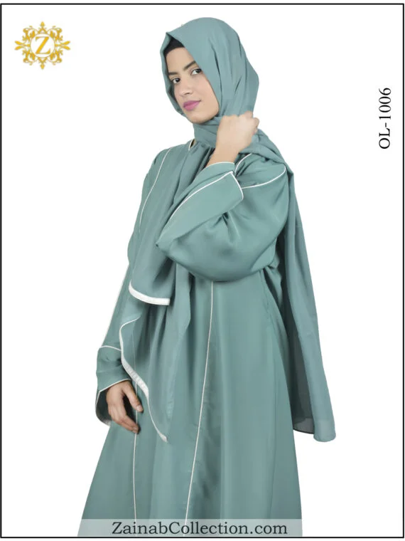 1 review for Nida New Front Open Abaya With Piping V Neck Style OL-1006