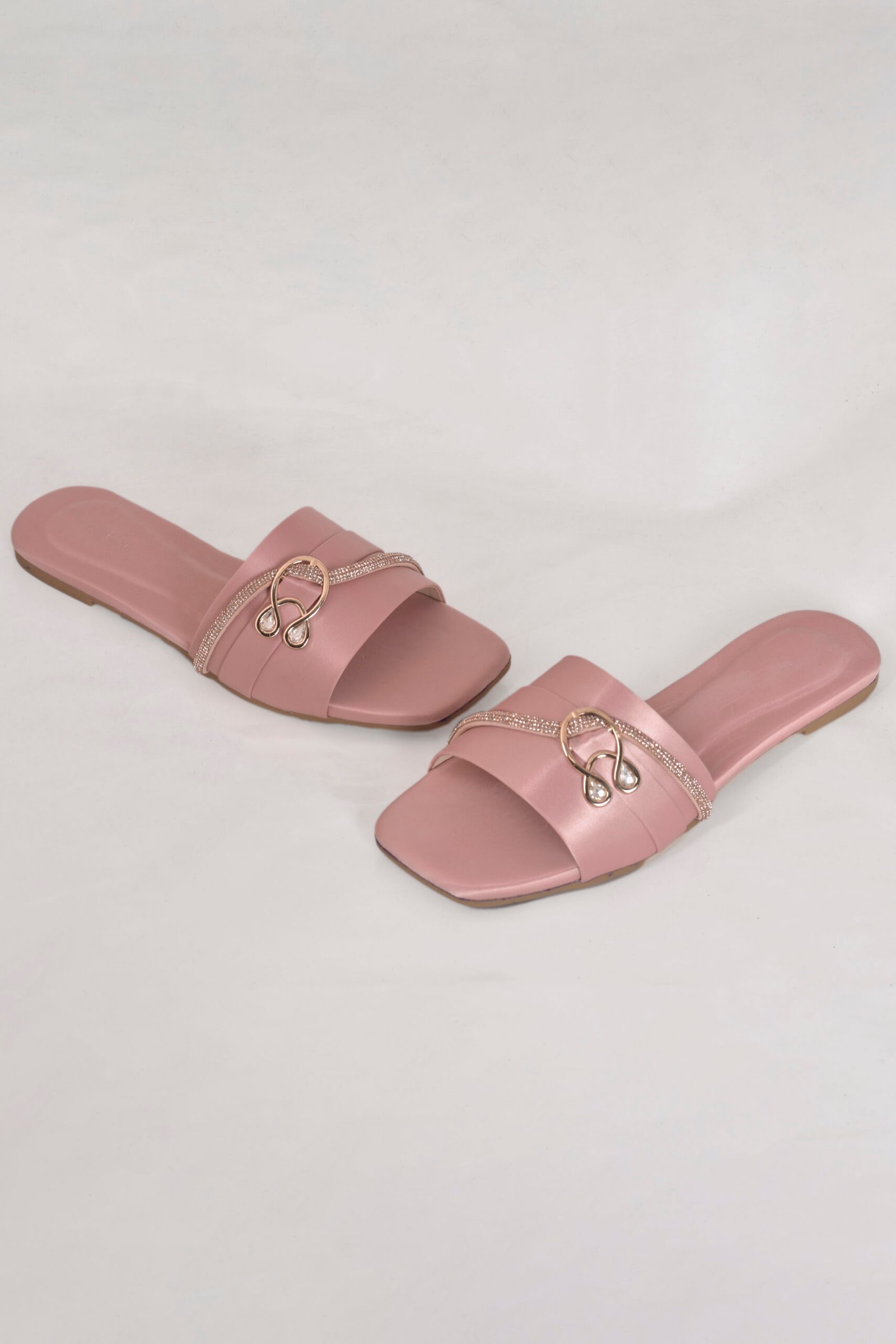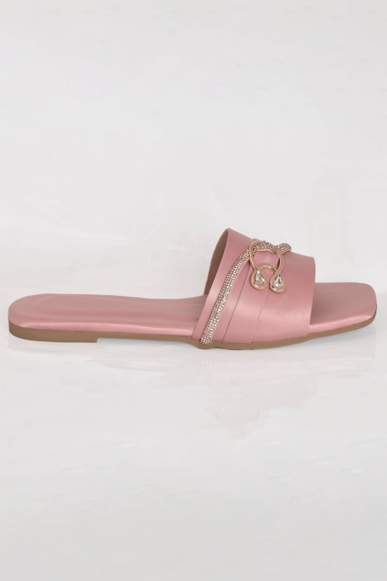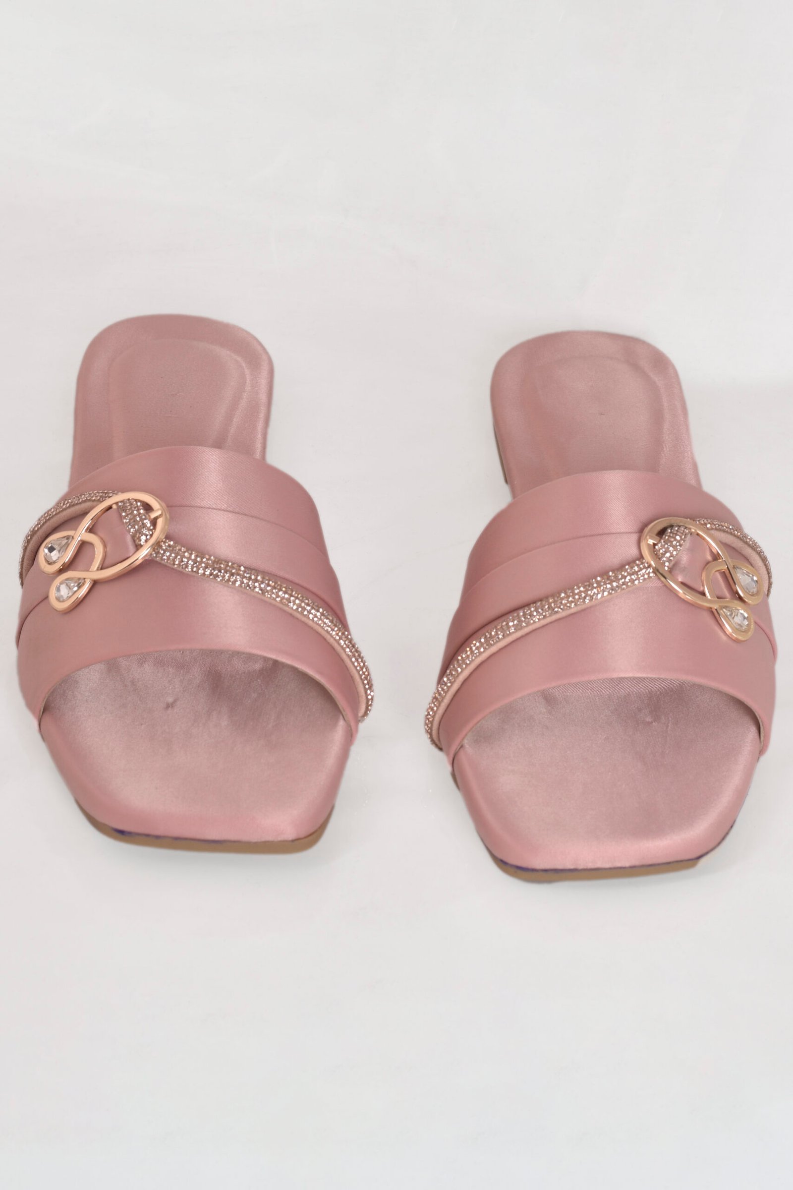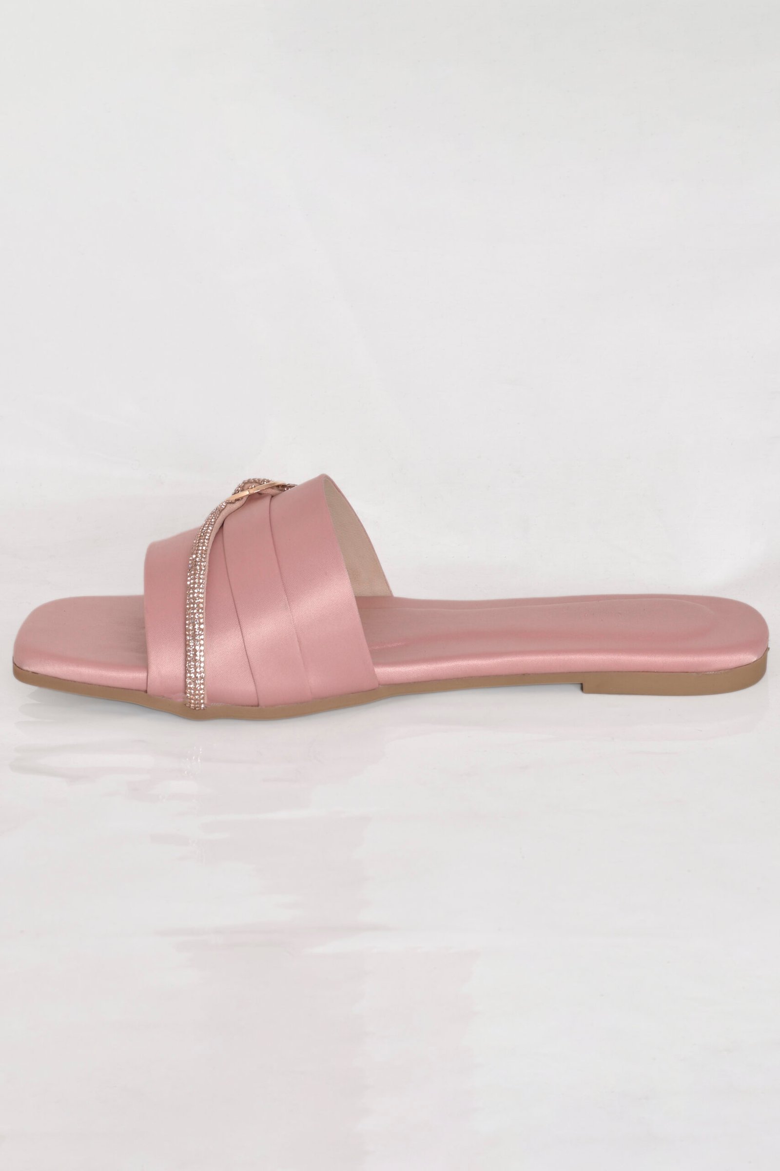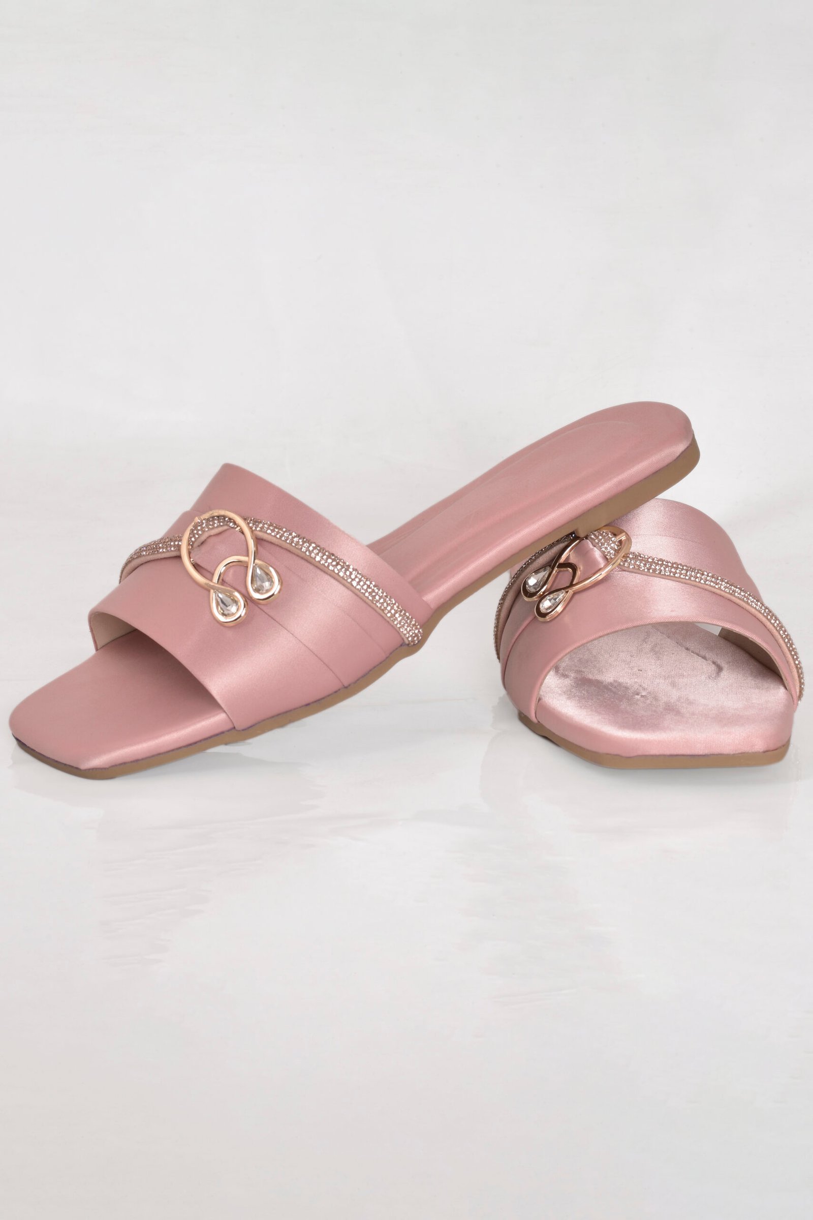 This elegant soft pink formal women slipper features a smooth satin finish, sparkling crystal detailing, and a gold-toned decorative mono. A graceful design from the Z. Collection by Zainab Designer Abaya, it offers the perfect blend of style, comfort, and affordability.