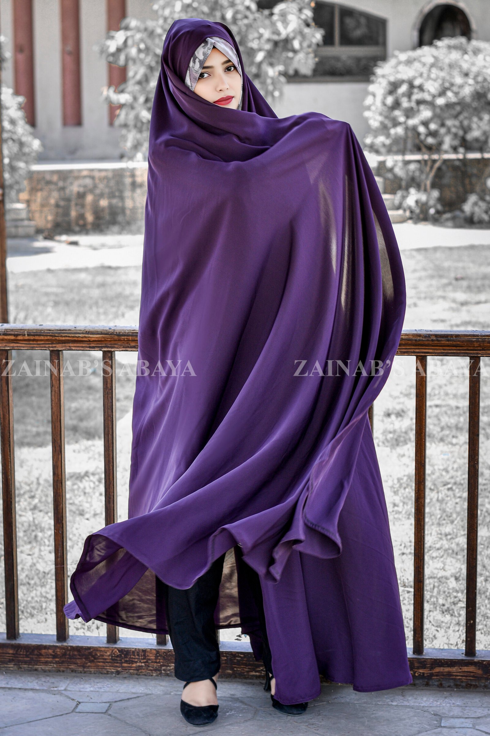 Step into graceful modesty with our Purple Irani Chadar featuring attached sleeves and crafted from luxurious Nida Korean fabric. Designed by Zainab Designer Abaya, the top abaya brand in Pakistan.
