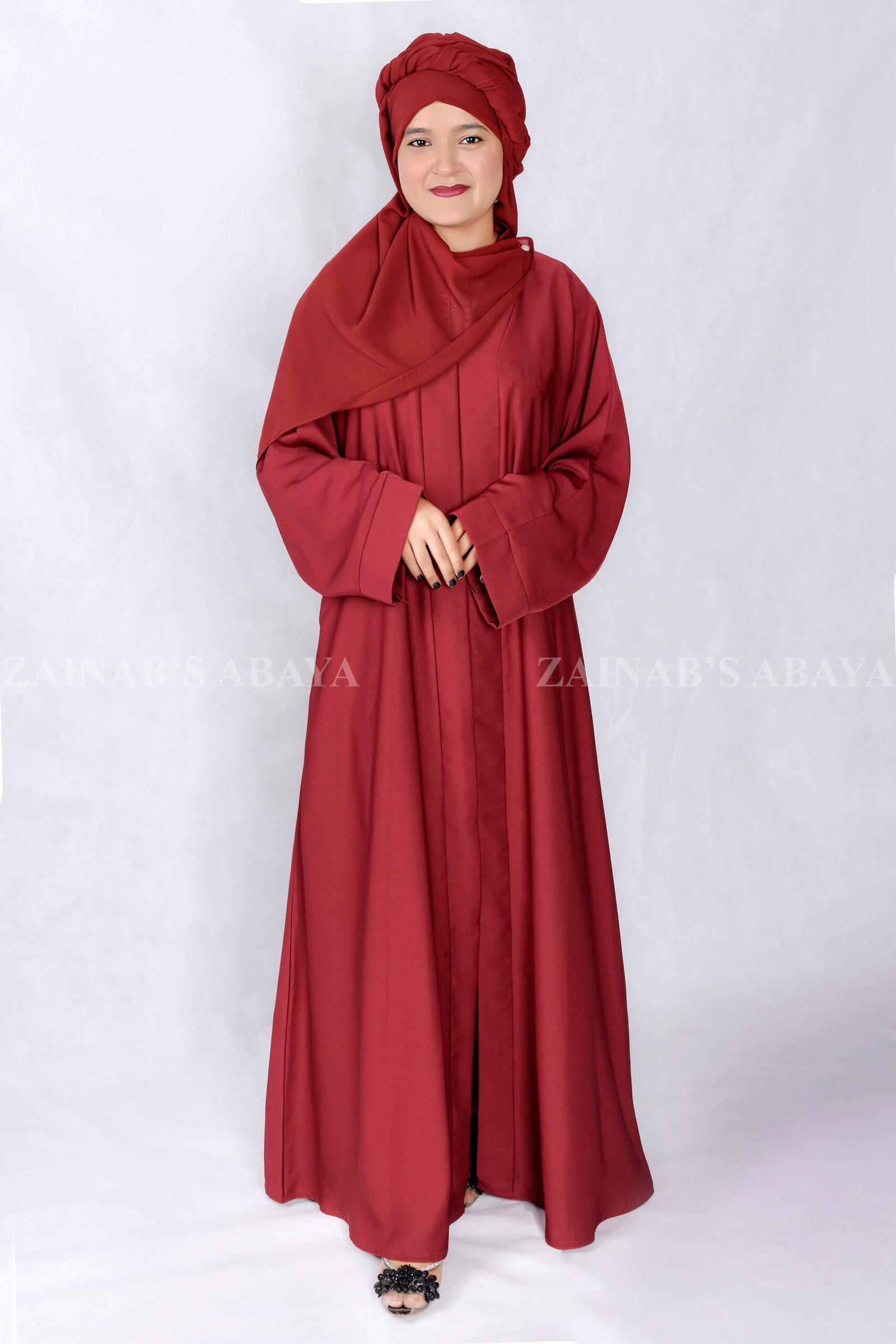 2 reviews for Red Colored Front Open Abaya with Side Pockets OL-119
