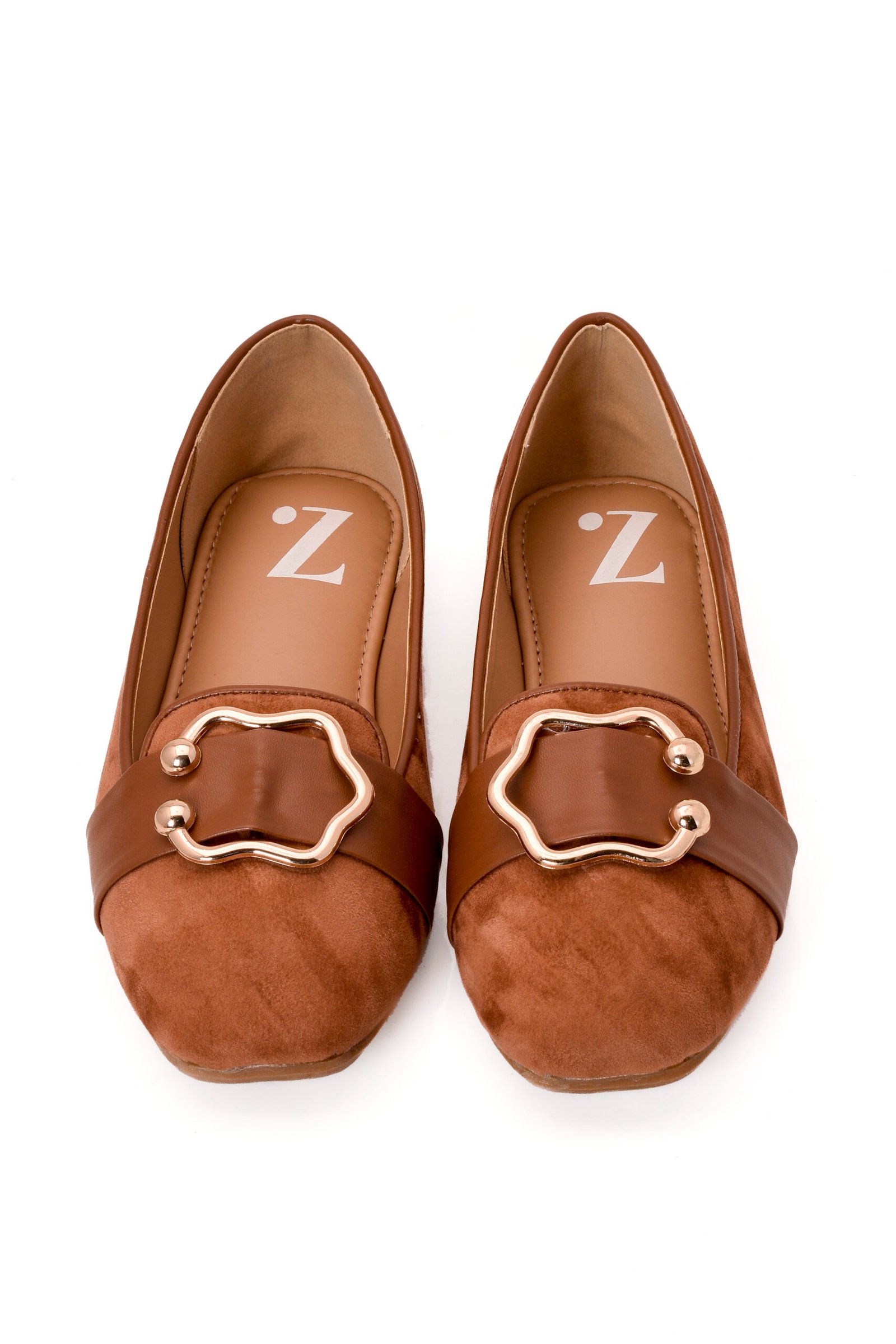 Step out in timeless style with these ladies pumps crafted in rich brown suede leather. Featuring a bold metallic buckle detail, these casual ladies pumps are the perfect blend of elegance and comfort. Designed by Z.Collection.