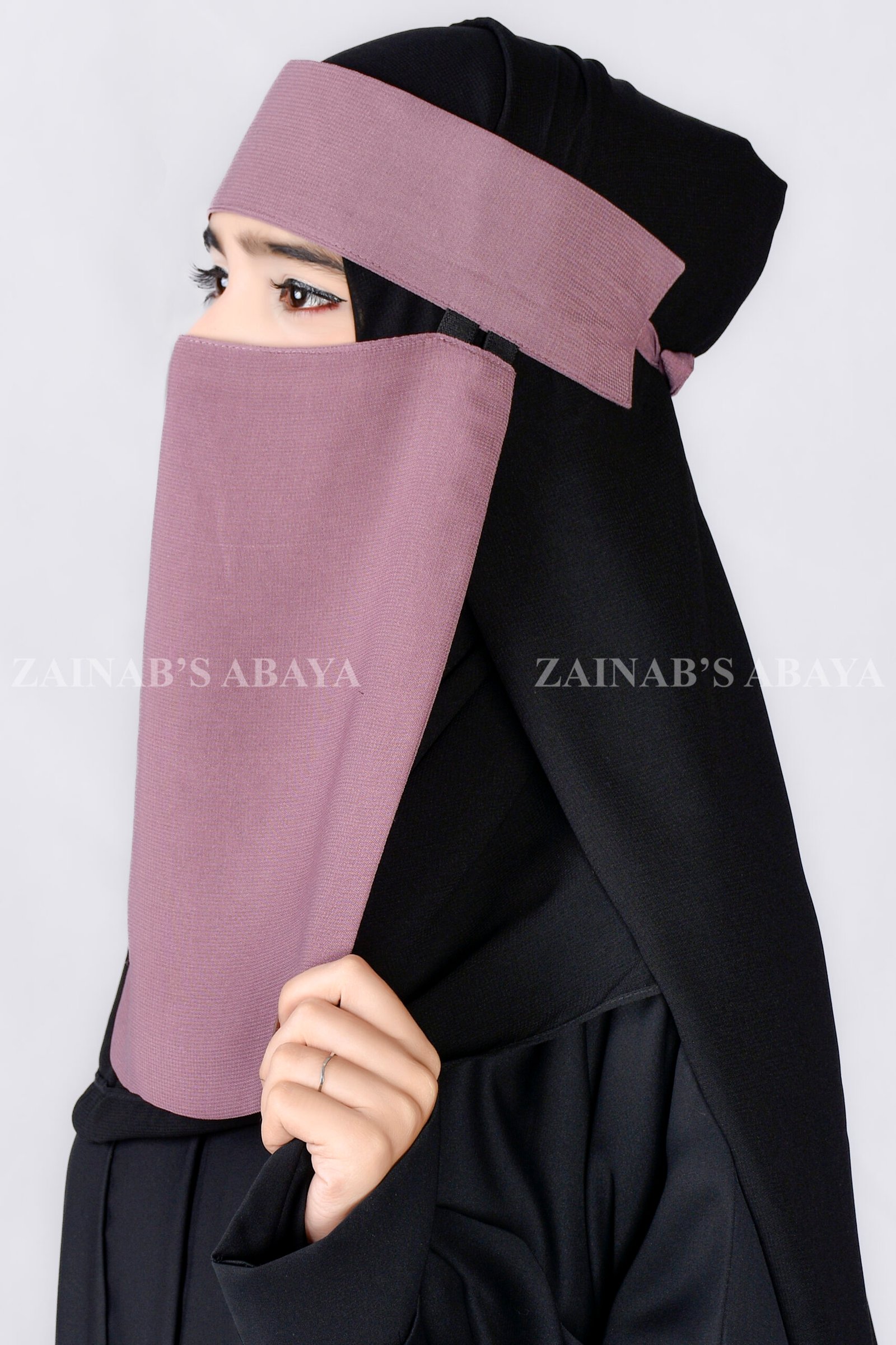 Elegant Saudi Niqab in Kasni color made with breathable fabric. A premium Saudi niqab with logo from Zainab Designer Abaya, combining modesty, comfort, and affordability. Perfect for daily wear or special occasions.