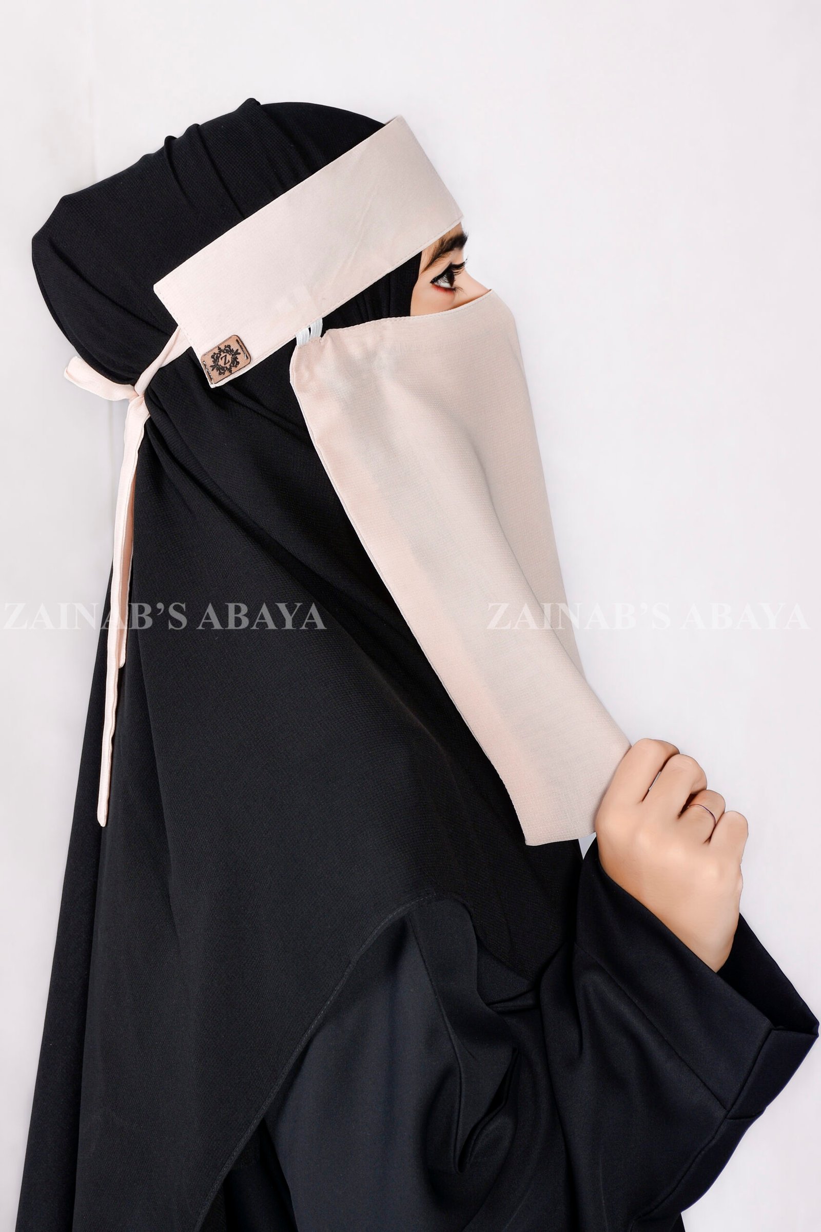 Elegant Saudi Niqab in Jade color made with breathable fabric. A premium Saudi niqab with logo from Zainab Designer Abaya, combining modesty, comfort, and affordability. Perfect for daily wear or special occasions.
